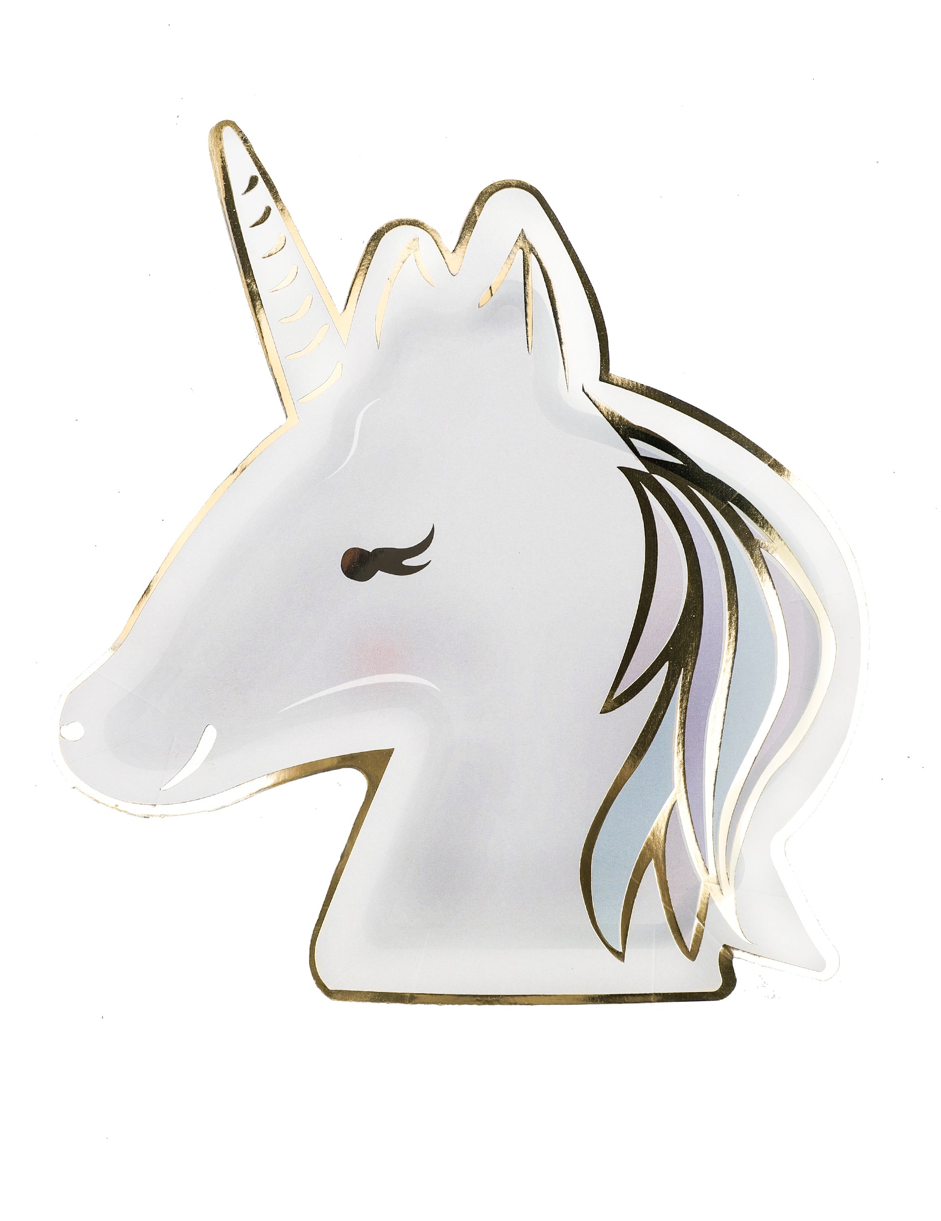 8 pastelnih in zlatih papirnatih krožnikov z motivom samoroga 23 cm oblika glave
