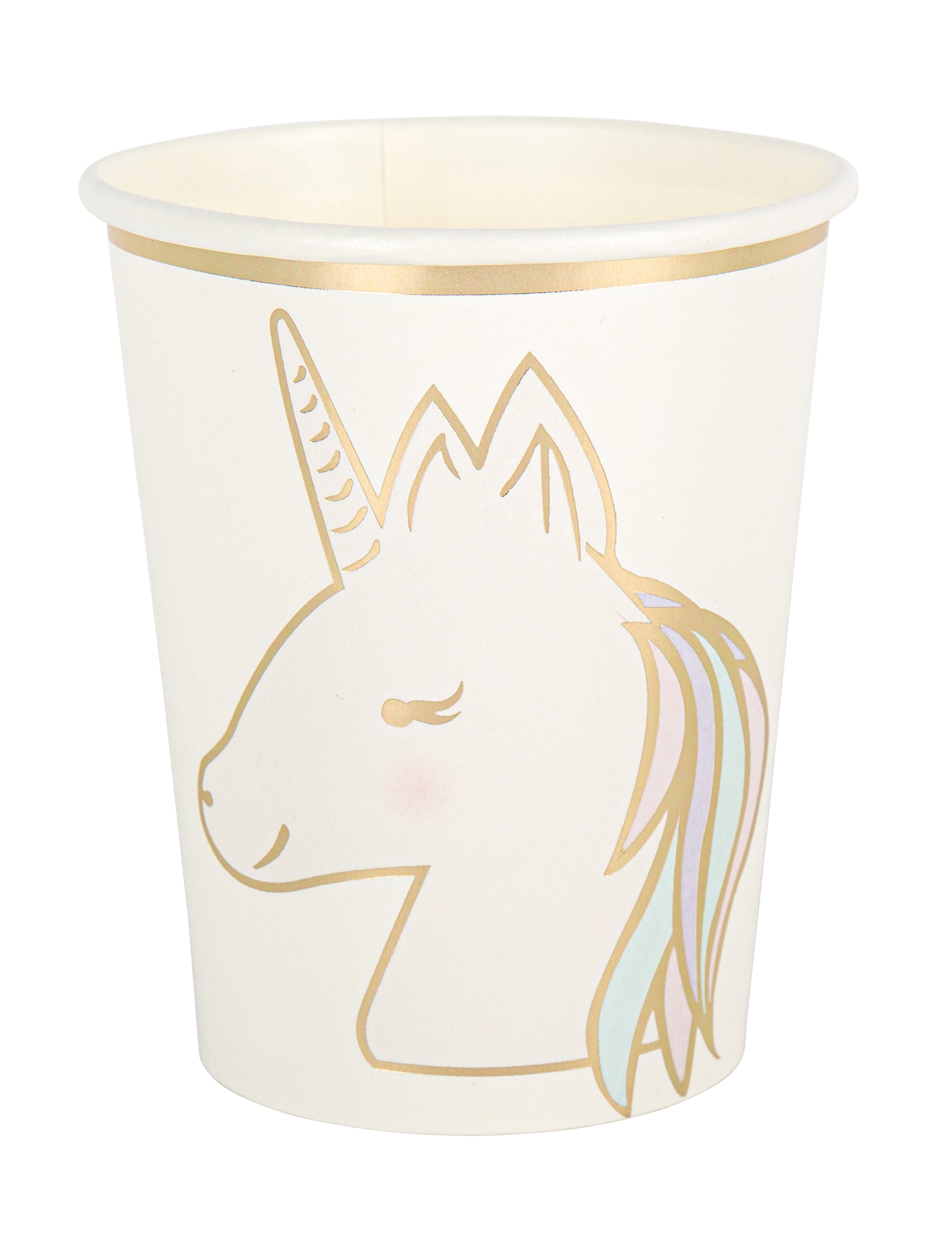 8 čarobnih pastelnih in zlatih kartonskih kozarčkov z motivom samoroga, 250 ml