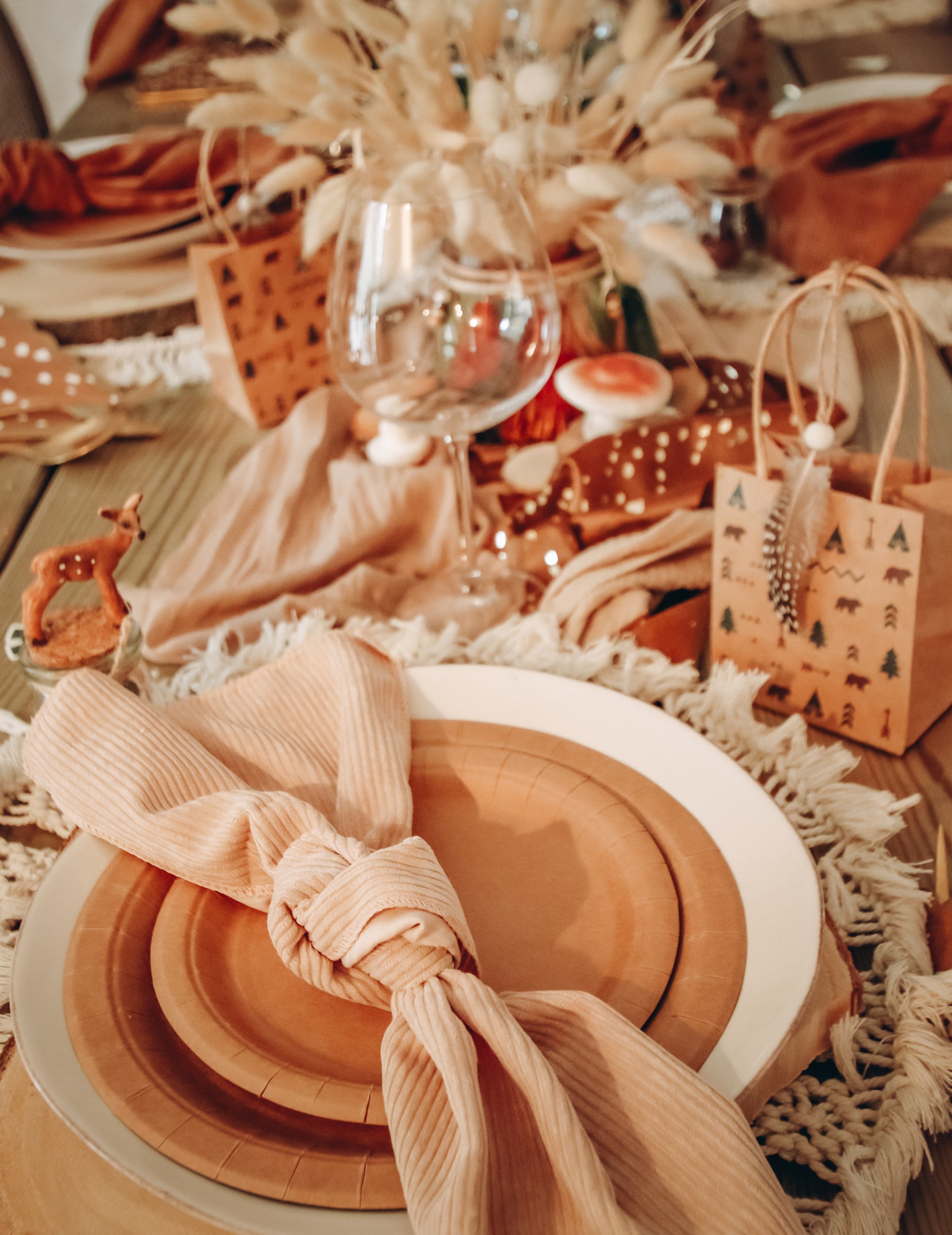 Z dolžino 3 m in širino 28 cm, To tekač za mizo bo vaše sprejeme polepšal s prefinjenostjo. Izdelan je iz bež žametne tkanine in se odlično poda k kraft papirju ali pampasovi travi. Je idealen dodatek za ustvarjanje boemsko vzdušje šik in dodajte svojemu dekorju pridih mehkobe poroka.