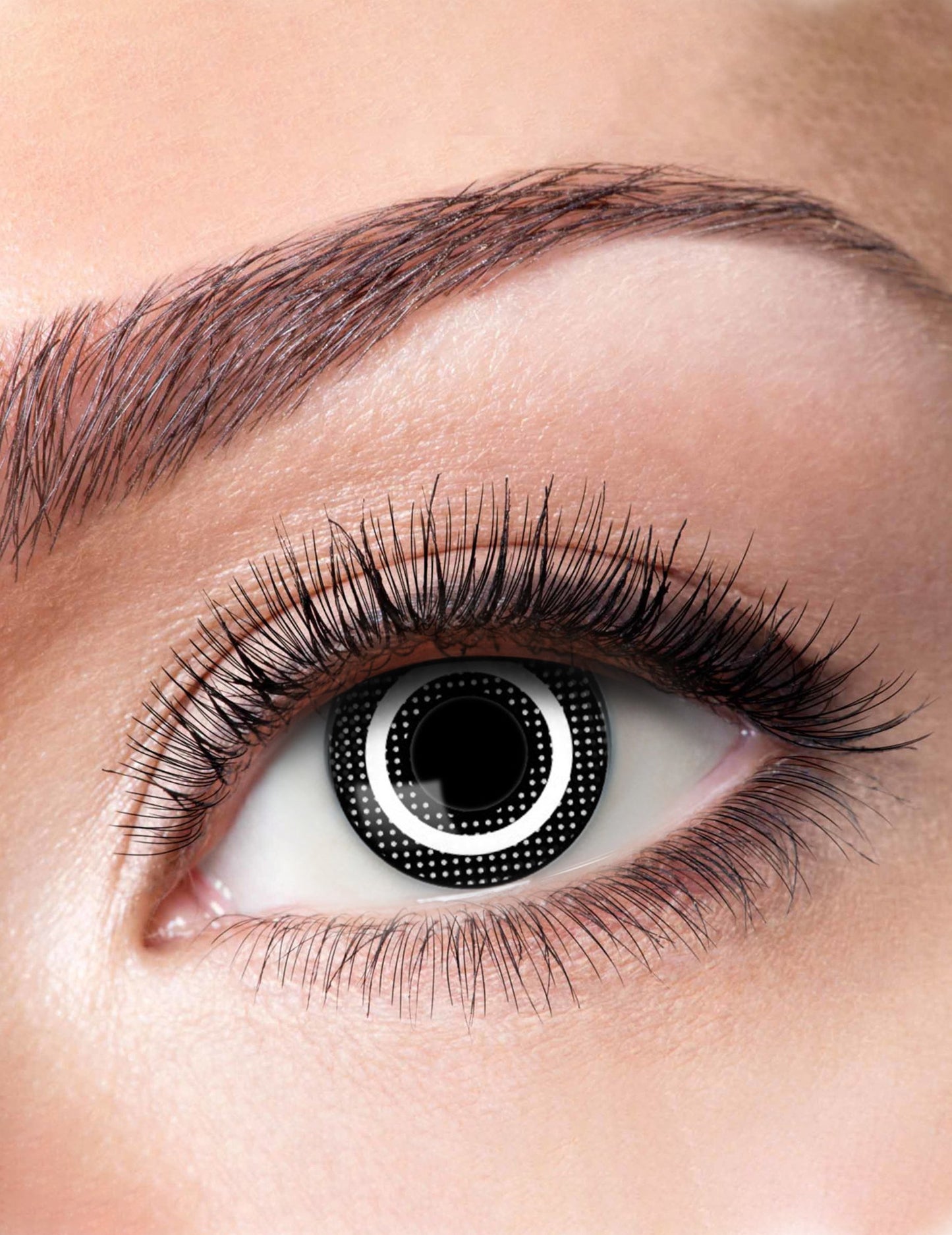 Te fantazijske leče brez popravnega igralnega simbola so namenjene odraslim. Črno -bele barve, premera so približno 14,5 mm in jih je mogoče uporabiti le enkrat po odprtju. Te leče bodo popolne, da boste med prikrito prireditvijo kot pustni ali noč čarovnic dokončali vašo obleko slavne korejske serije! Ta izdelek je certificiran CE0120 - ISO9001 - ISO13485 in CE.