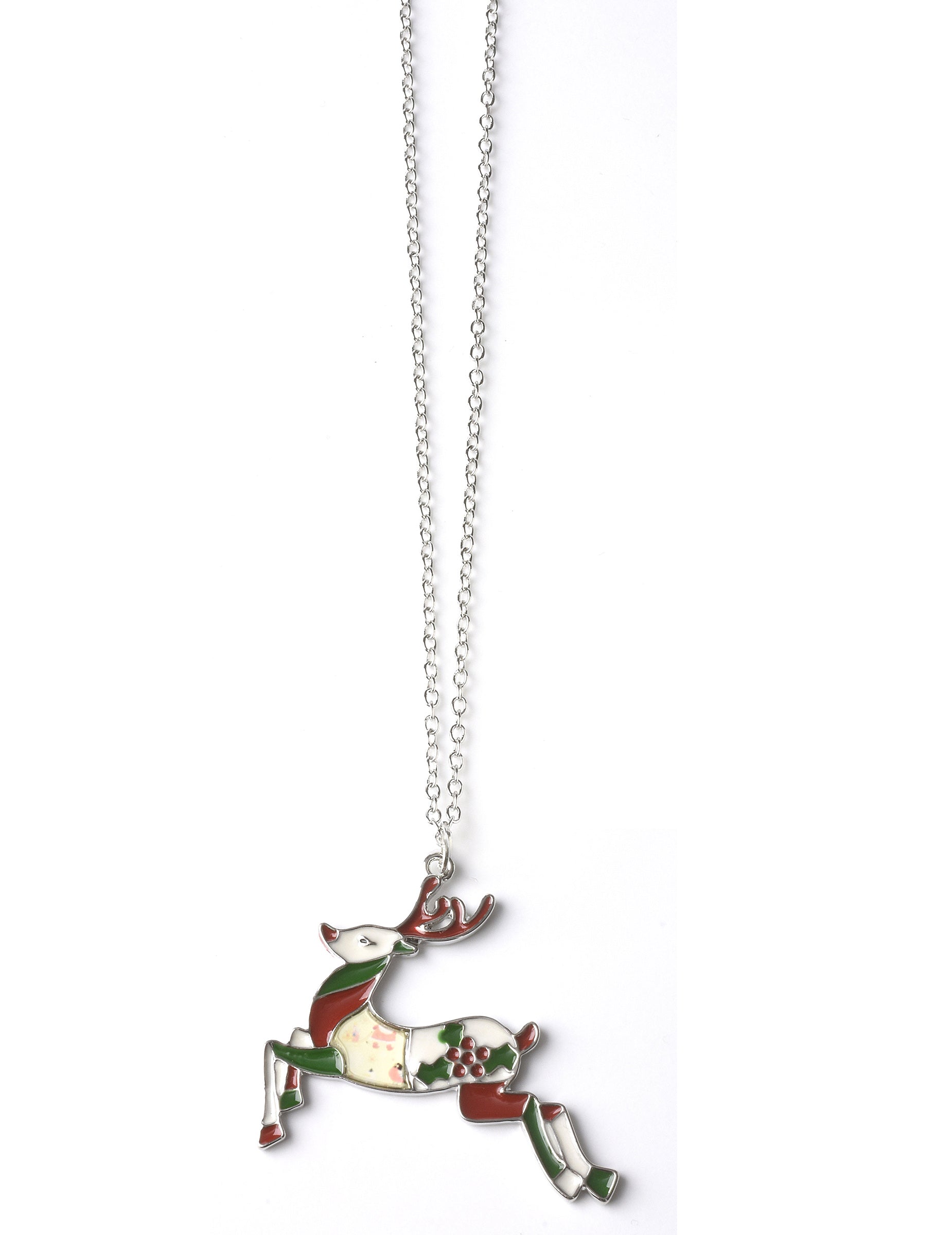 Iz kovine, ta verižica je sestavljena iz kovinske verige s priveskom v obliki jelena. Privešek je zelene, bele in rjave barve, z lepo vejico bodike na njem.