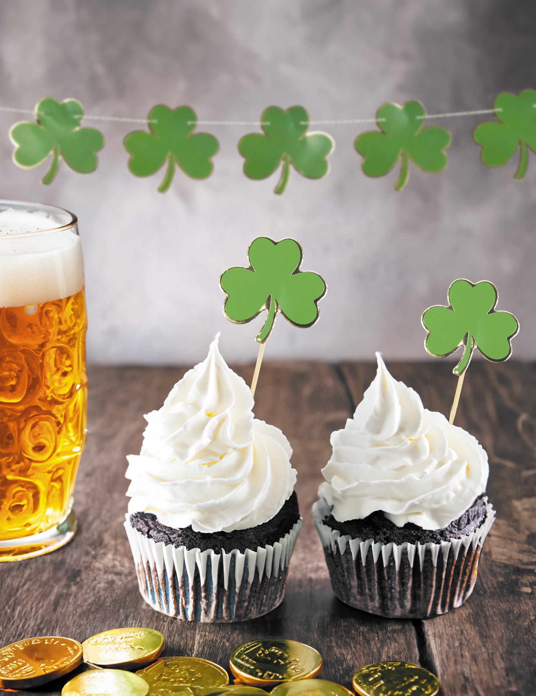 Ti leseni vrhovi detelje se prodajajo do 10. So približno 8 x 5 cm in predstavljajo zeleno detelo. Okrasite svoje torte in aperitive s temi vrhovi ob svetem Patriku!