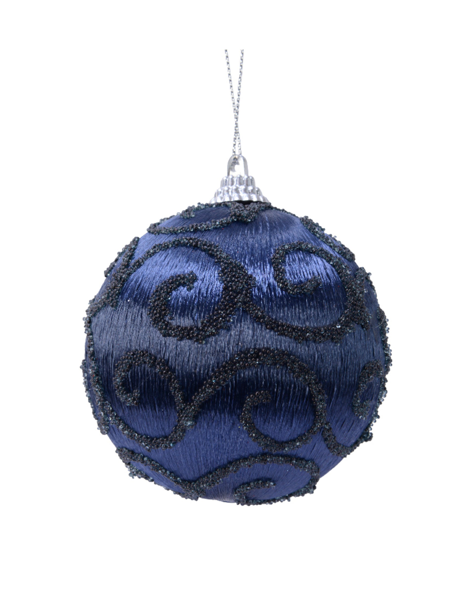 S tem dodate svojemu dekorju pridih elegance Božična krogla od 8 cm premera. Zasnovan je na polistirenski podlagi in prevlečen z bleščečo polnočno modro tkanino, okrašeno z modro-črnimi bleščicami. Praktičen je, saj ima na vrhu zanko za hitro in enostavno namestitev. Ta vzmetenje prefinjeno bo takoj izboljšalo vaše Božično drevo med prazničnim časom.