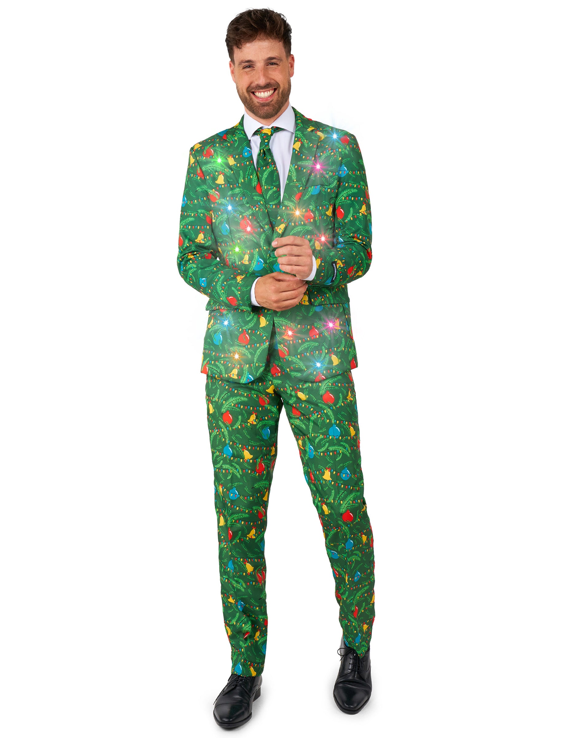 Ta svetleča zelena božična obleka za moške je pod uradno licenco Suitmeister™. Vključuje suknjič, hlače in kravato.
