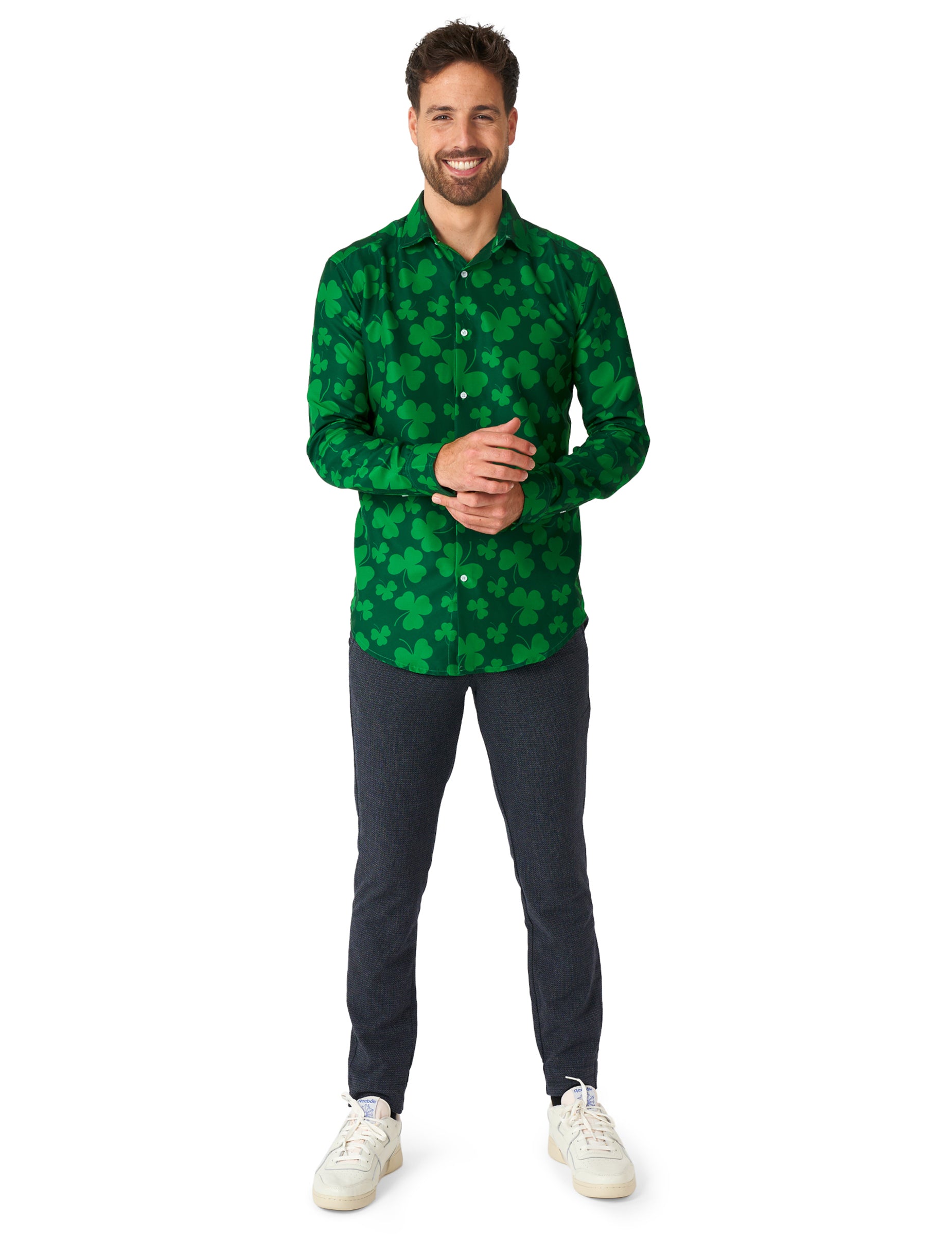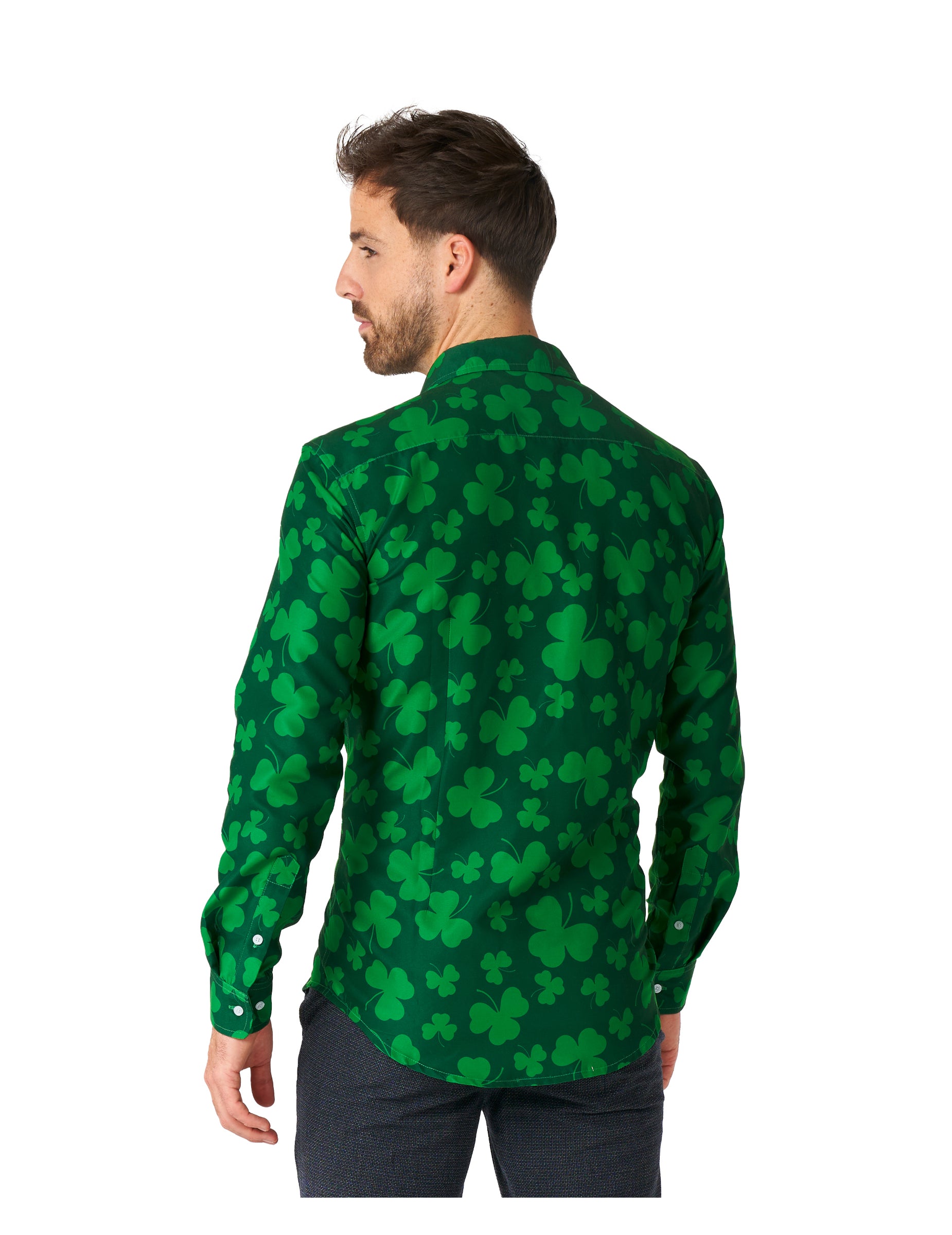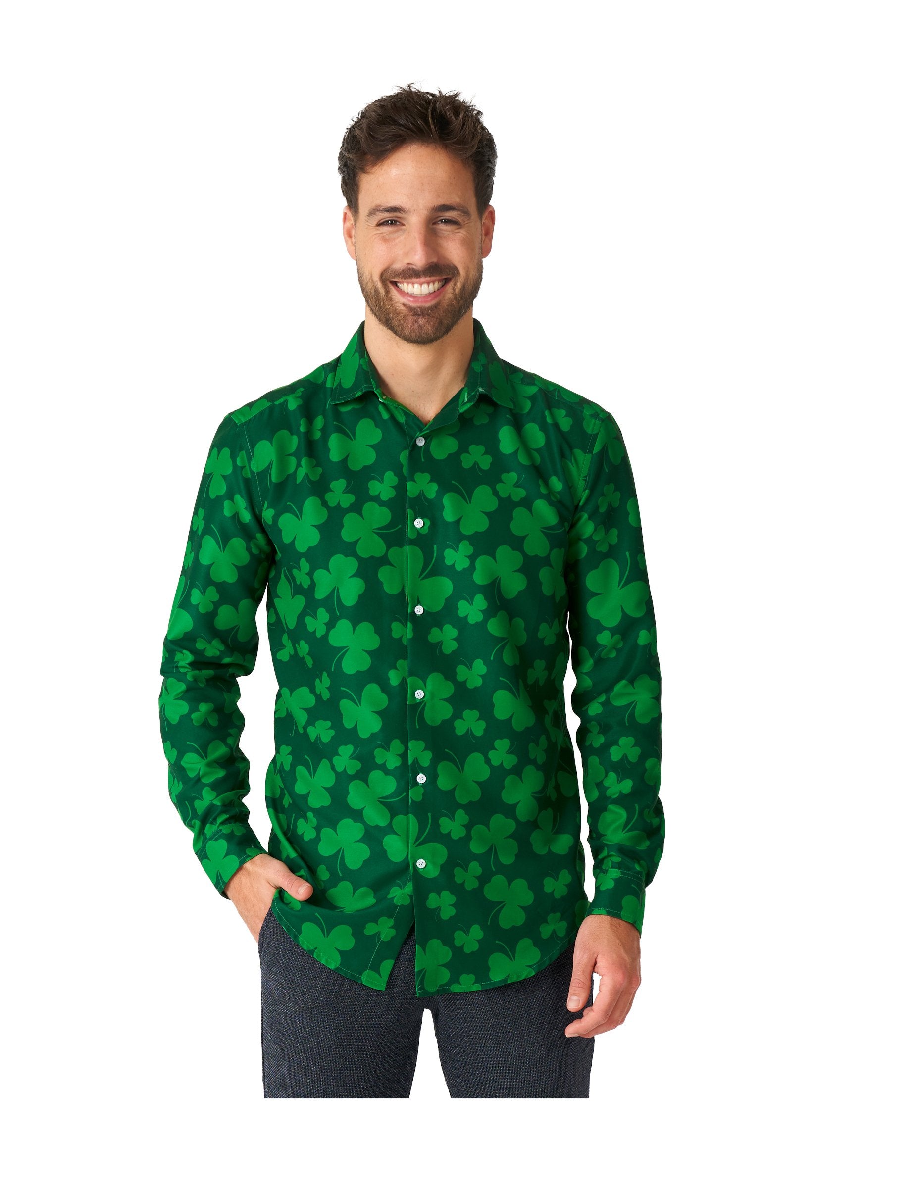 Ta majica Saint Patrick Trèfles je namenjena moškim. Ta majica pod uradnim licenčnim oblekam vsebuje dve barvi zelene barve, ki jih na splošno predstavlja Clover. Našli boste bele osrednje gumbe, da jih enostavno pritrdite. Ta kostum bo kot nalašč za dokončanje vaše obleke med znanim dnevom svetega Patrika!