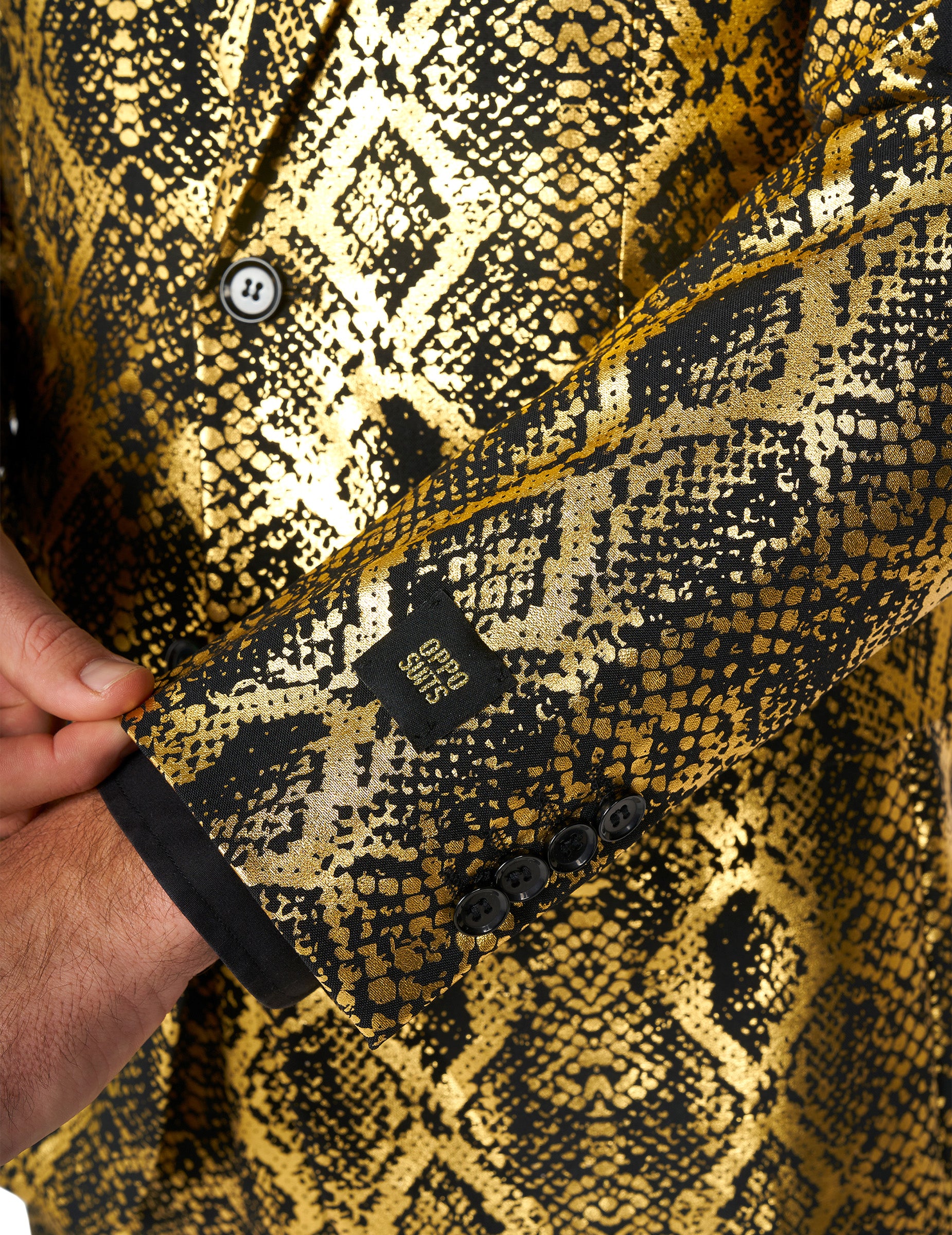 Ta odrasli sijoči kačji kostum je pod uradno nasprotno licenco. Vključuje jakno, hlače in kravato. Jakna z dolgim žarom vsebuje 2 gumba kot osrednje zapiranje in 4 notranje žepe. Kostumske hlače vsebujejo 2 zadnjega žepa, 2 stranski žepi, ki jih spremlja z zadrgo. Celoten kostum je izdelan iz kakovostne tkanine s kačjo tehtnimi odtisi s penečo črno in zlato barvo. Izpolnite svojo obleko s tem kostumom ob karnevalu ali za novo leto!