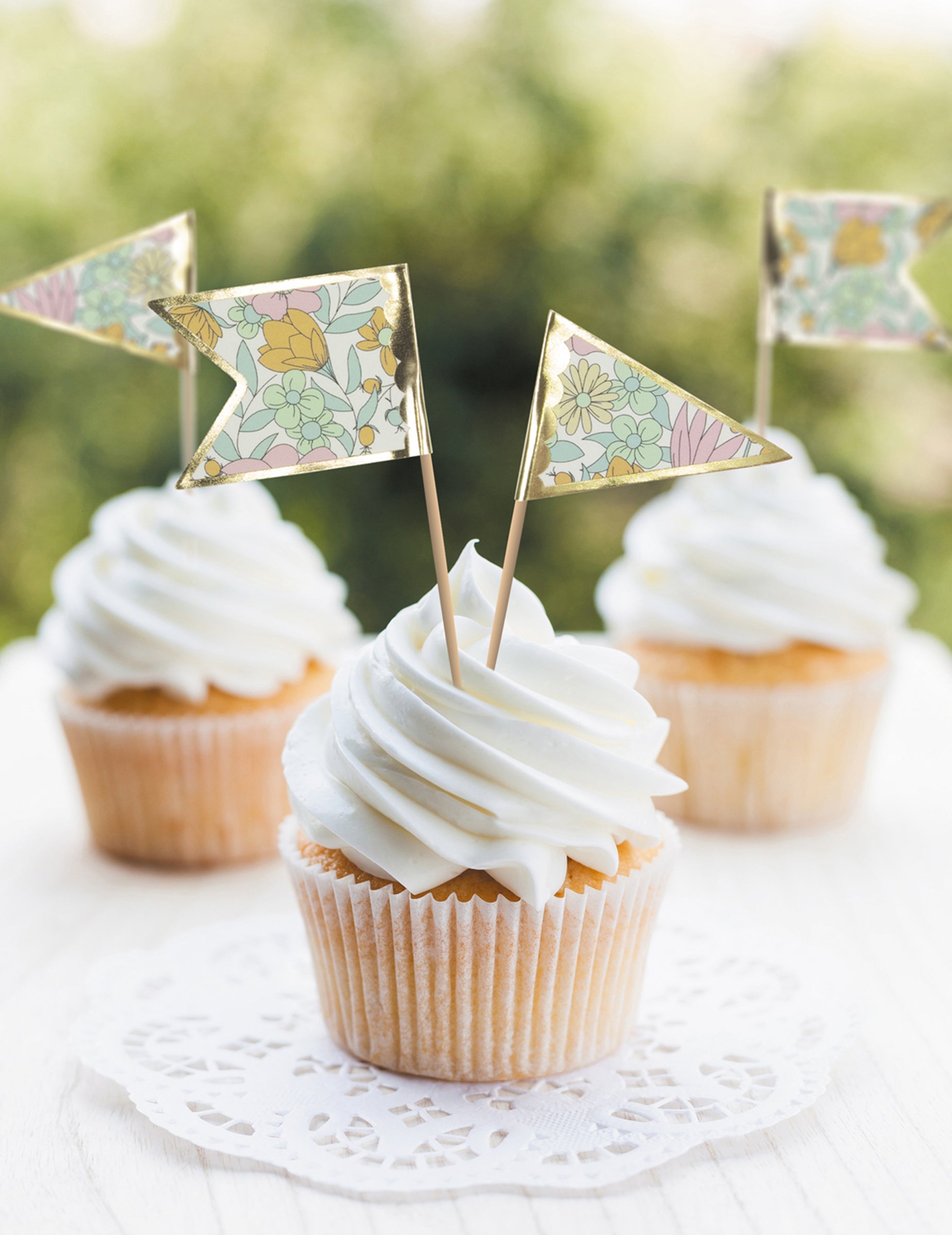 Ta sklop je sestavljen iz 10 okraski za torte merjenje 10 cm visoko. Ti leseni dodatki so okrašeni z lepimi zastavami na Tisk svobode z zlato obrobo. Popolno za okrasitev kolačkov, brownijev ali piškotov. Slike svobode bodo vašim sladicam dodale pridih šarma. Popolnoma se ujemajo s posodo iz iste kolekcije. Idealne za rojstni dan ali sprejem, uporabite te izbor koktajlov za popestritev vseh vaših sladkih dobrot.