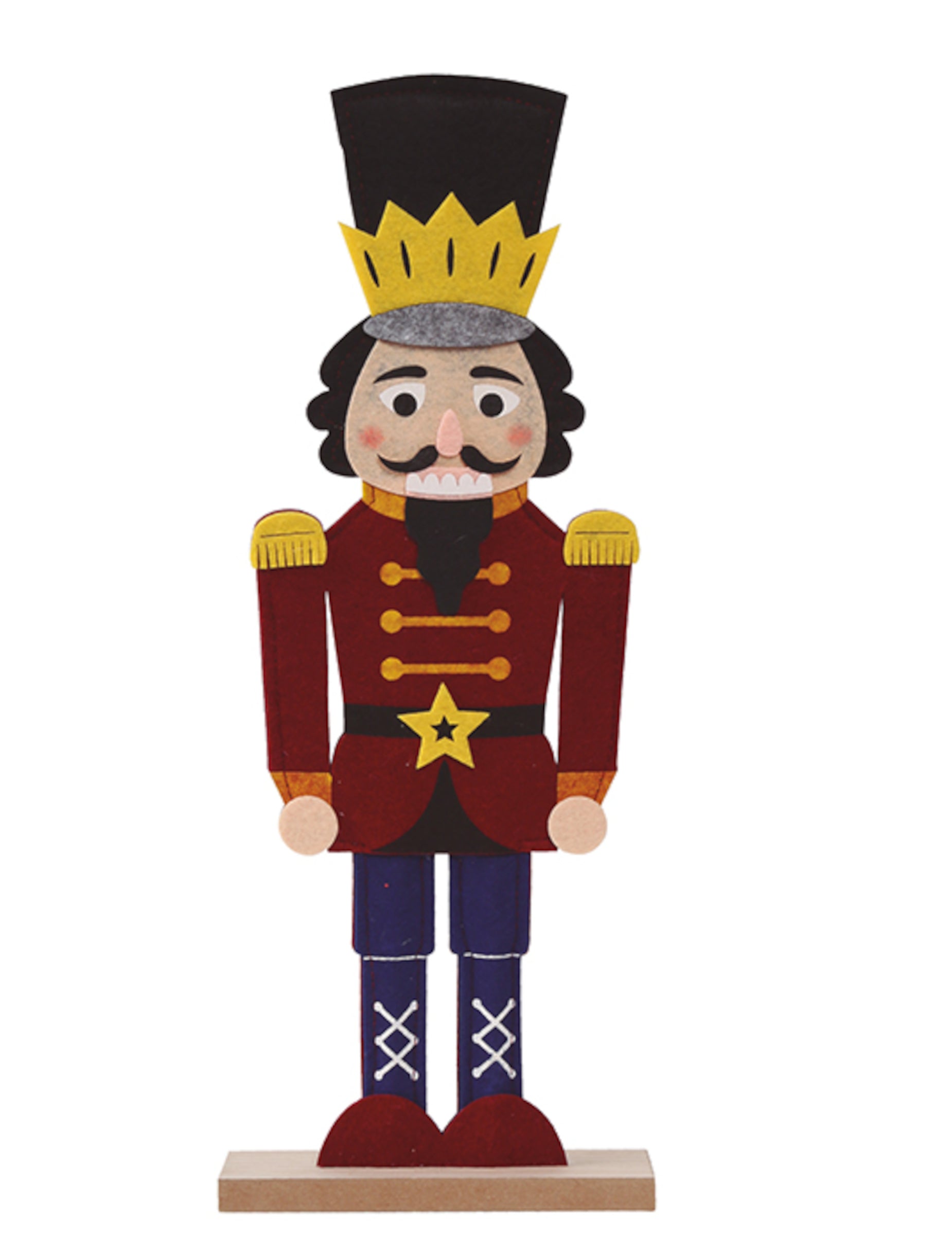 S to veliko vojak Hrestač od 42 cm. Ta figurica, izdelana iz lesa in filca, ima elegantno modro, rdeče in zlato obleko z ujemajočim se klobukom. Zahvaljujoč trdnemu lesenemu podstavku nudi popolno stabilnost. dekoracija Ročno izdelani izdelki bodo polepšali vaše dekoracija pogrinjki miz med prazniki Božič.