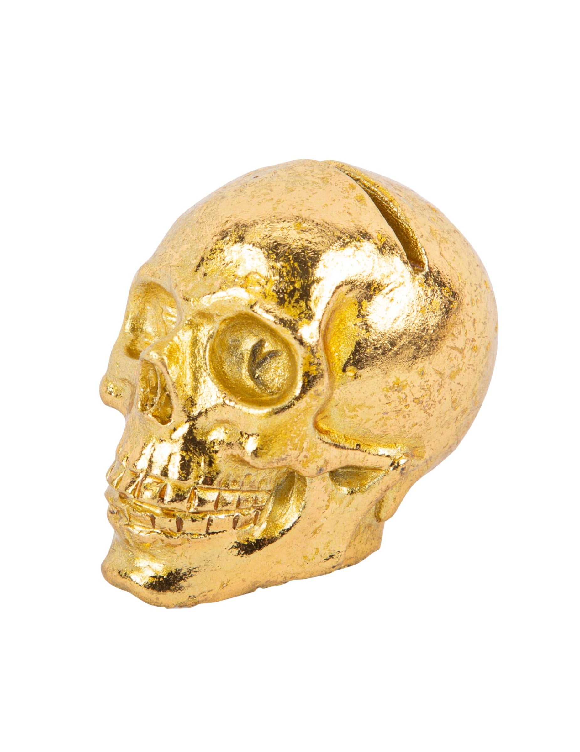 Ta serija je sestavljena iz dveh znamk blagovne znamke, ki merita približno 4 cm x 3,5 cm. V smoli predstavljajo lobanjo okostja. So zlate barve in imajo odprtino na vrhu, da v imenu vašega gosta vključijo karton. Ta serija oznak lobanje bo kot nalašč za vašo dekoracijo mize ob večernem večeru!