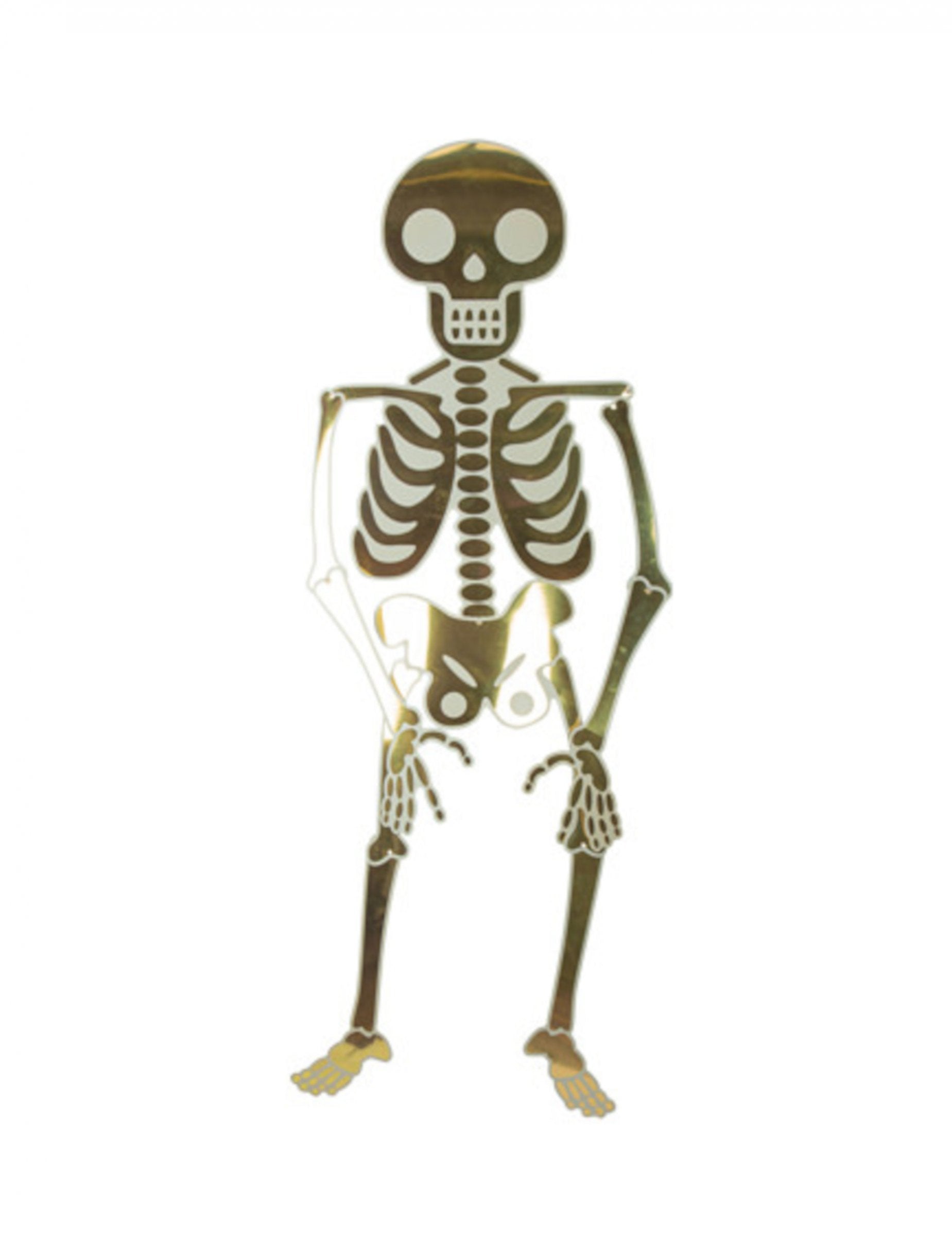 To artikulirano okostje meri približno 1,35 m x 46,8 cm. V papirju je bele in zlate barve, s čimer tvori veliko zgibno okostje. Ta animirana dekoracija bo kot nalašč za dokončanje vaše notranje ali zunanje dekoracije na noč čarovnic!