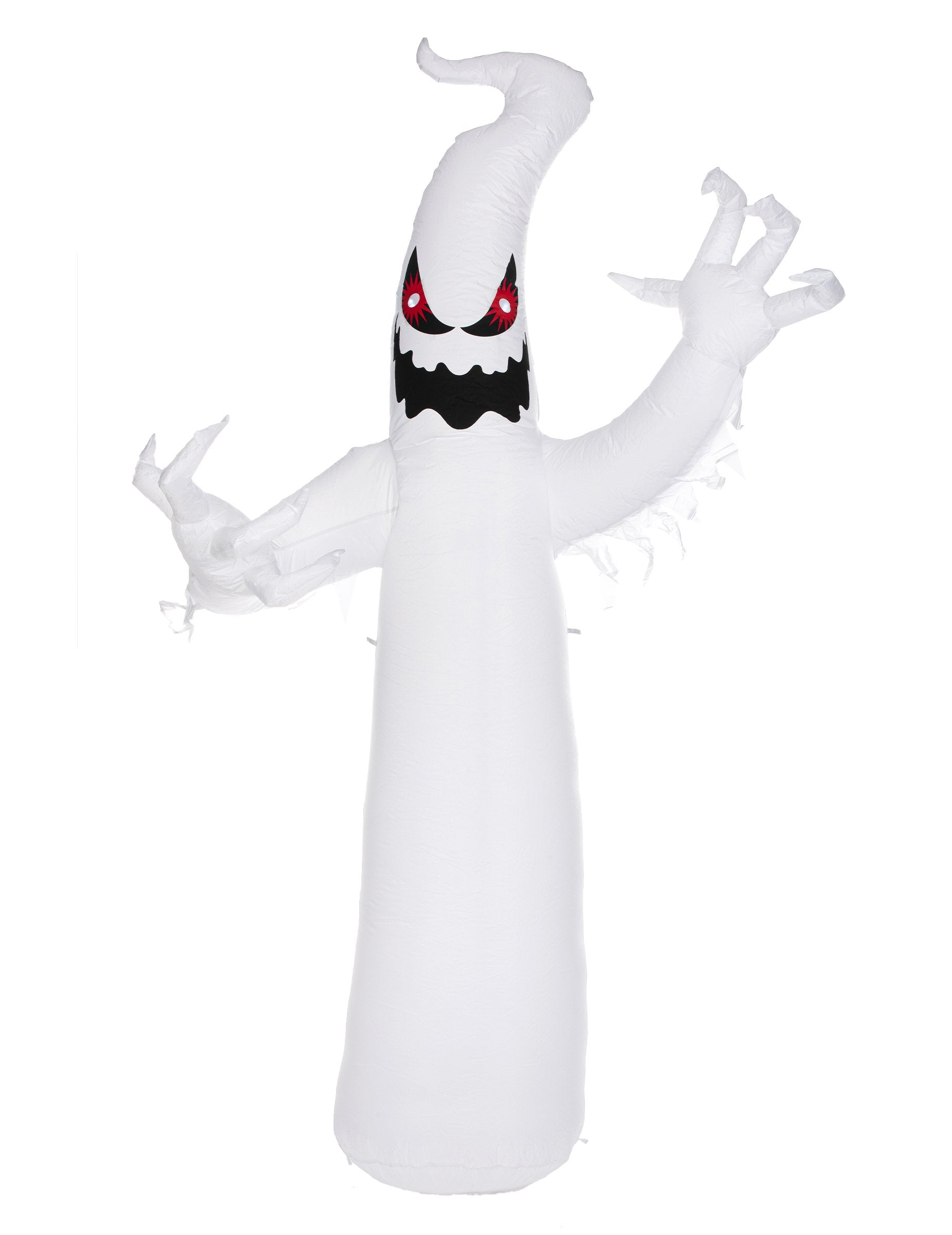 Ta napihljiv strašljiv duhov meri približno 240 cm visok! Na celotnem in črni barvi je bela na očesu in ustih. LED oči bodo vzele po temi ... in bodo sčasoma spremenile barve! Opremljena bo z velikimi ostrimi rokami, zaradi katerih se bo kdo približal ... Če želite napihniti ta velikanski balon, bo preprosto dovolj, da ga povežete z električno vtičnico in ga pustite povezane med svojo uporabo. Ta velikanski duh bo idealen za vašo zunanjo dekoracijo med večerjo za noč čarovnic!
