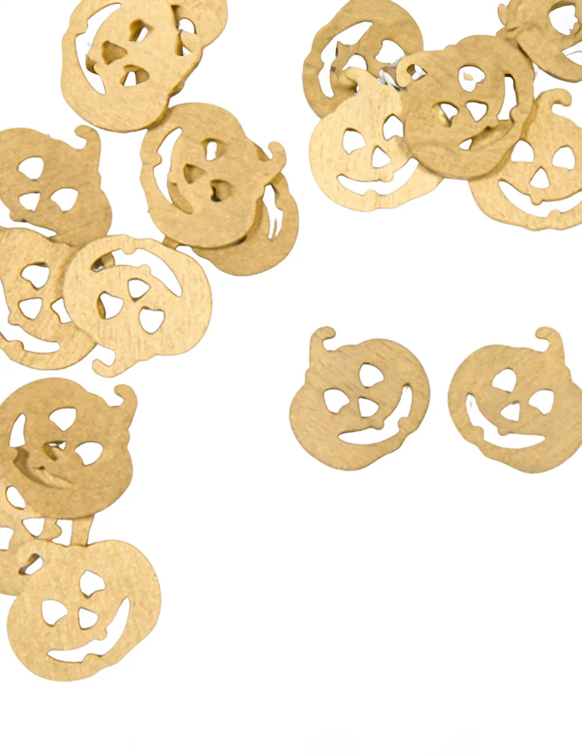 Ti mizici so narejeni iz lesa in izmerijo približno 2 cm. So v obliki nasmejane zlate barve. Ti bučni konfeti bodo kot nalašč za oblačenje mize za noč čarovnic!