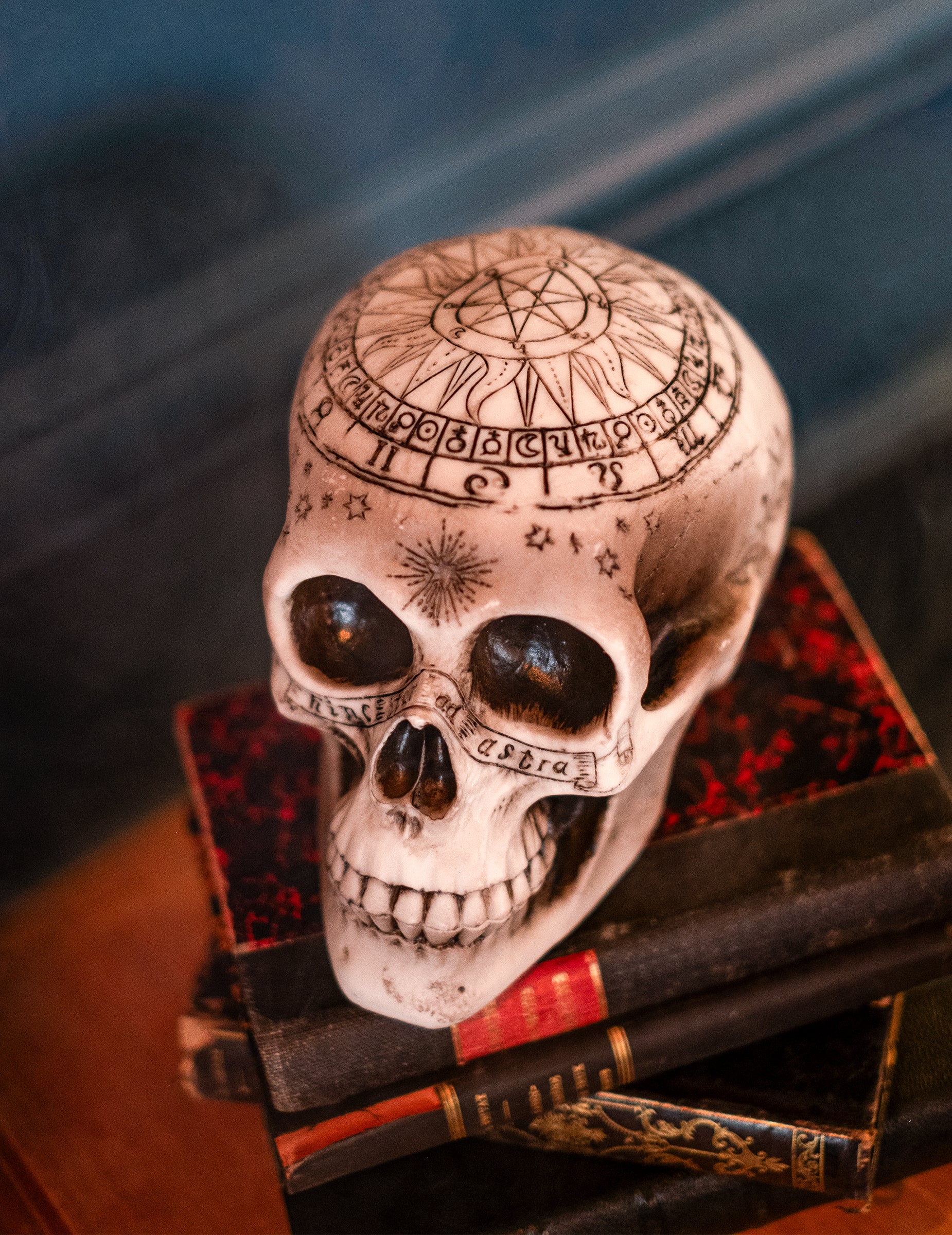 Skoletna lobanja s pentagramom 18 x 12 x 15 cm