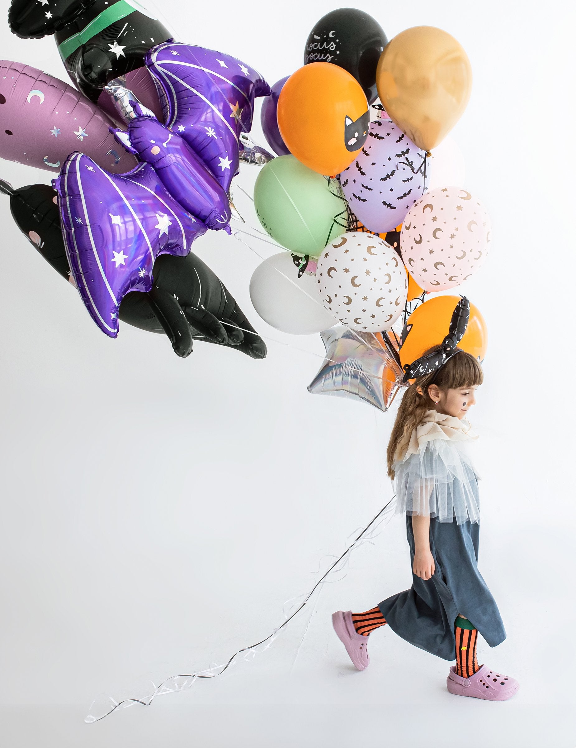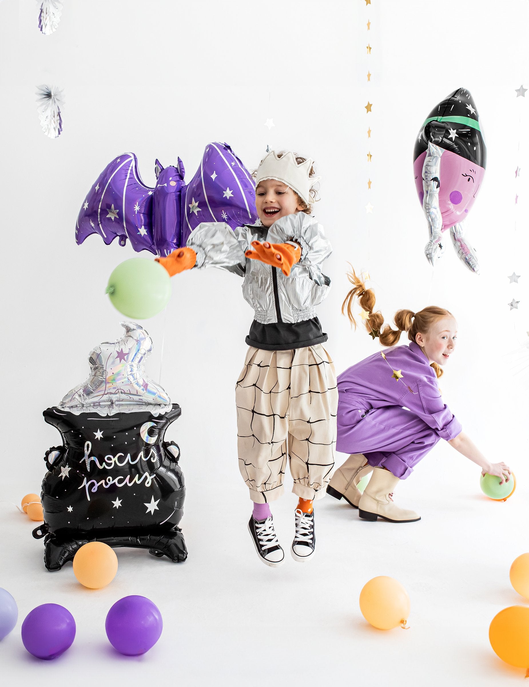 Ta velikanski balon je narejen iz aluminija in meri približno 119 x 51 cm. Predstavlja čudovito vijolično palico. Okrašena je z zvezdami različnih velikosti. Ta velikanska Batouris Ball bo senzacija med vašo zabavo za noč čarovnic!