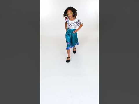 Ta otroški kostum Mirabel Encanto je pod uradno Disneyjevo licenco. Ima obleko. Obleka je sredi dolžine in prispe na kolena. Je v precej modri satenasti tkanini in okrašen z vtisi o cvetovih in barvnih metuljih. Glede na velikost je natisnjeno tudi ime junakinje "Mirabel" znane madrigalne družine. Vrh obleke je bel in s kratkimi rokavi. Okrožena je z ovratnikom čolna, okrašena z majhnimi črnimi in barvitimi metulji. Za ta karneval se s to lepo preobleko spremenite v mirabel risanke Disney Encuny!