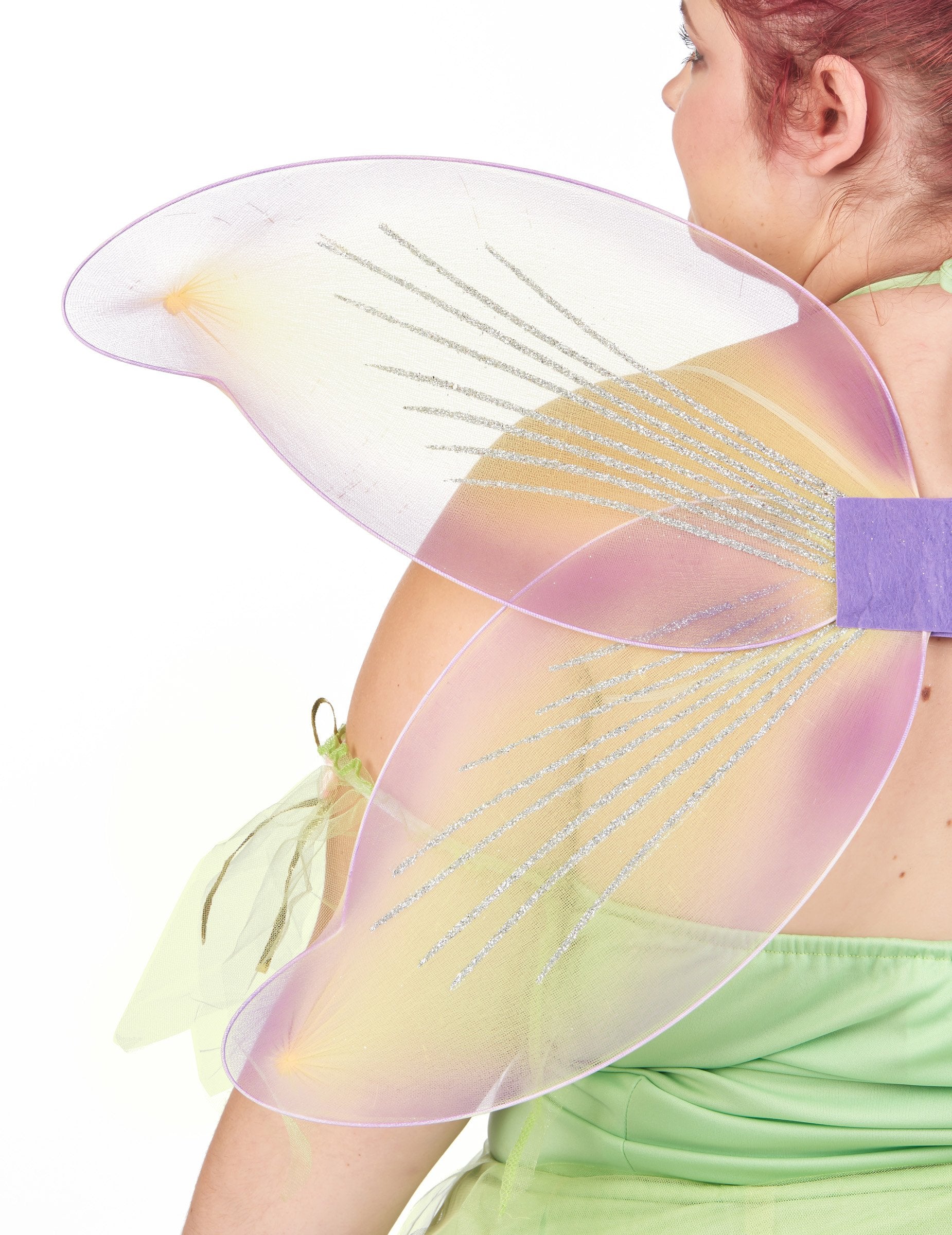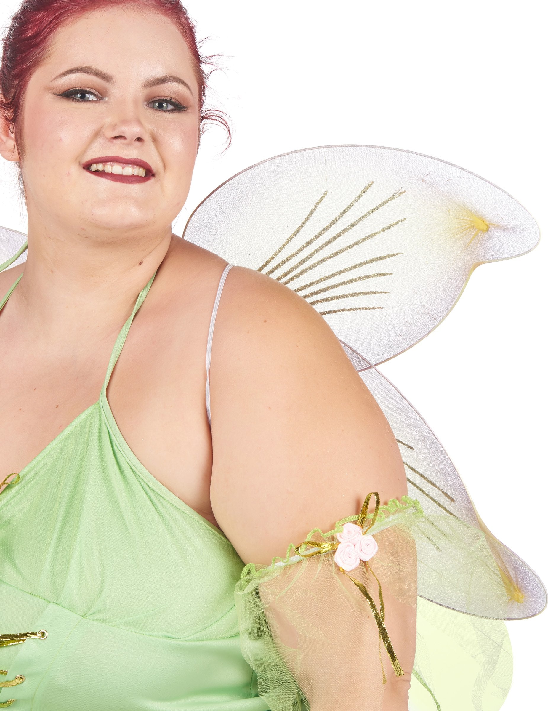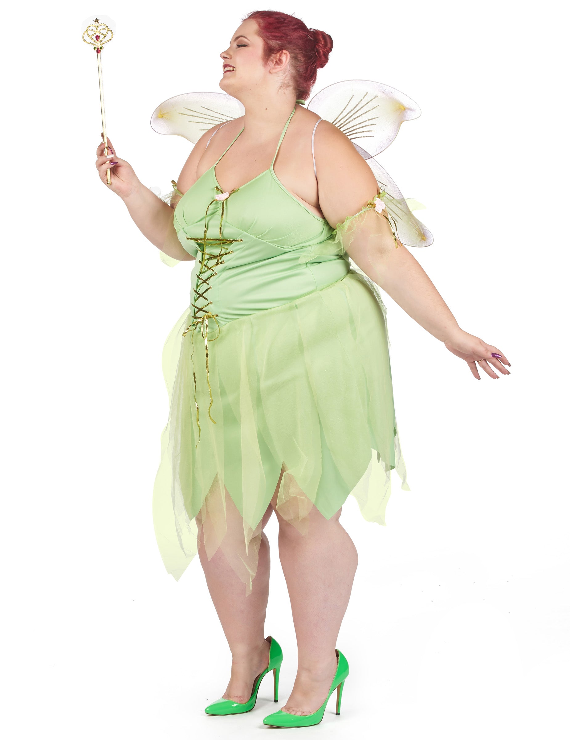 Ta velik seksi vilinski kostum je namenjen ženskam. Sestavljen je iz obleke, par kril in dveh zapestnic. Obleka preobleke je zelena barva na celotni barvi. Zanj je značilna lepa odprtina na zadnji strani, zlahka pritrjena okoli vratu. Na zadnji strani boste našli zadrgo. Obleka je okrašena z nastavljivim steznikom z zlatim trakom. Majhne vrtnice se neposredno širijo z obleko v rokah, zapestnicami, pa tudi na vratu. Kar zadeva dno obleke, jo bo značilno sijoče tančice. Krila sestavljajo tudi isto tančico, ki jo spremljajo bleščice. Krila so pritrjena kot nahrbtnik, z majhno belo elastiko. Ta pravljični kostum bo idealen za izpopolnjevanje vašega tematskega večera, kot so karneval, novo leto ali za šolsko predstavo!