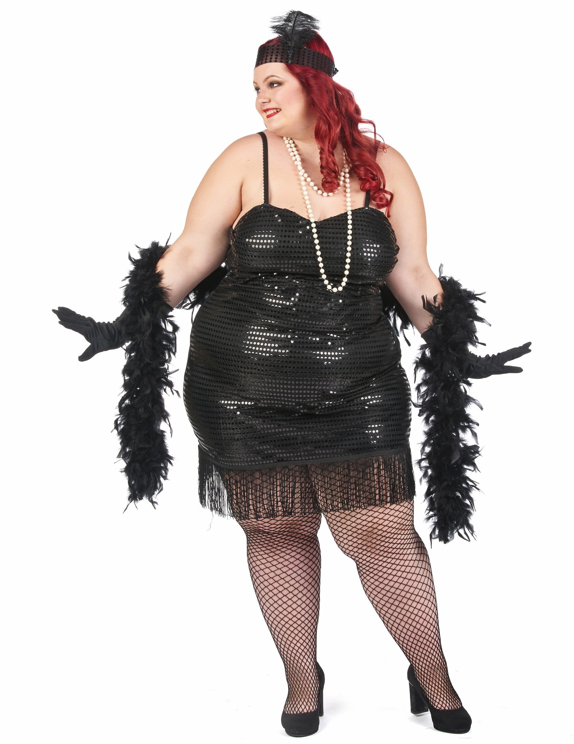 To Kostum za plus size charleston je za ženskeVključuje obleko in naglavni trak.