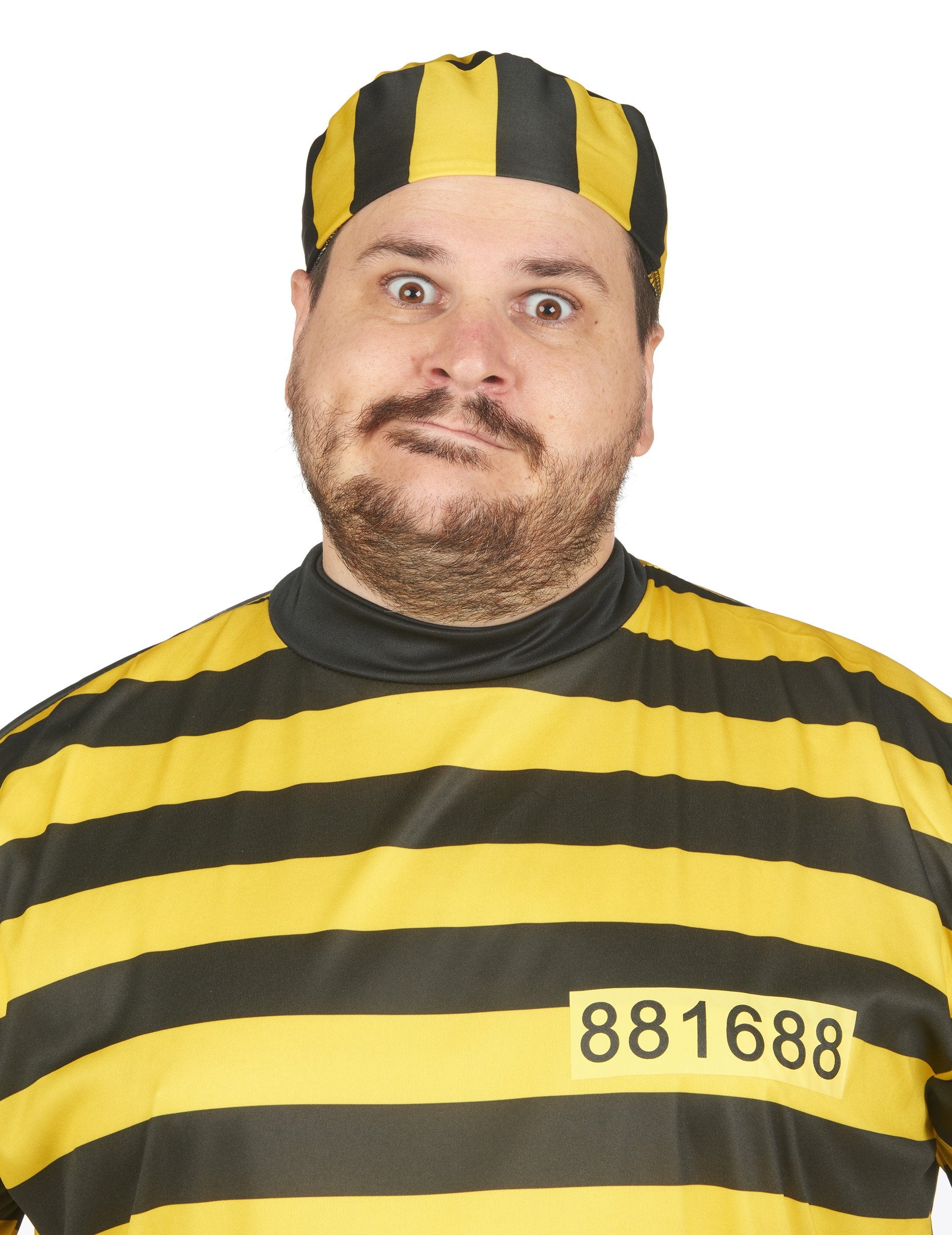 Ta velika velika rumena zaporniška kostum je namenjena odraslim. Sestavljena je iz majice, hlač in kape. Tri kose preobleke se ujemajo s tiskanim natisnjenim na črno in rumeno. Krasi ga tudi zaporniška funkcija, ki se pojavlja v trupu. Kostum tega pridržanja bo idealen za izpopolnjevanje vašega pustnih večera ali katerega koli drugega prikritega dogodka!