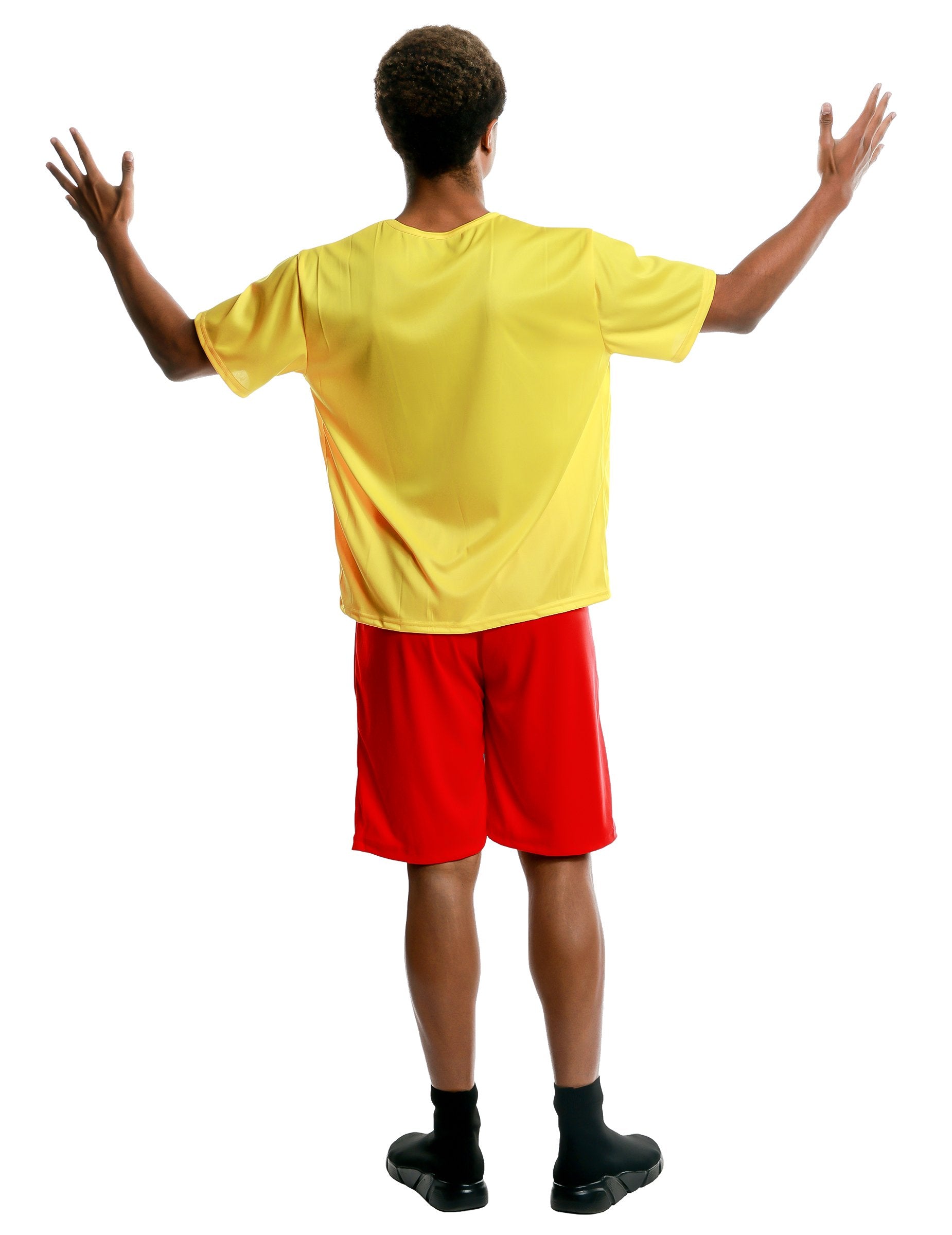 Ta reševalca preobleke na morju je namenjena moškim. Sestavljen je iz majice in kratkih hlač. Majica je rumena in okrašena s grbom "reševalca dežurstva", kar pomeni reševanje v službi. Kratke hlače so rdeče in z istim grbom. Ta preobleka je odlična ideja za poletno zabavo ali večer, preoblečen s prijatelji na tematski humor!