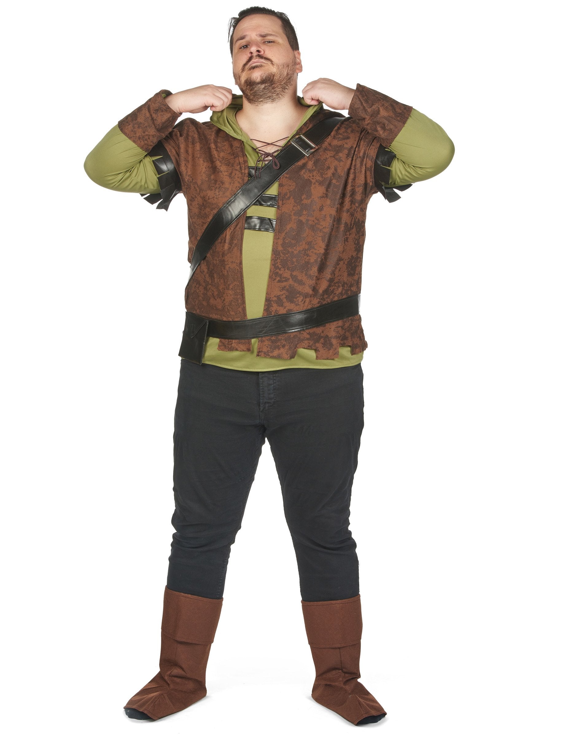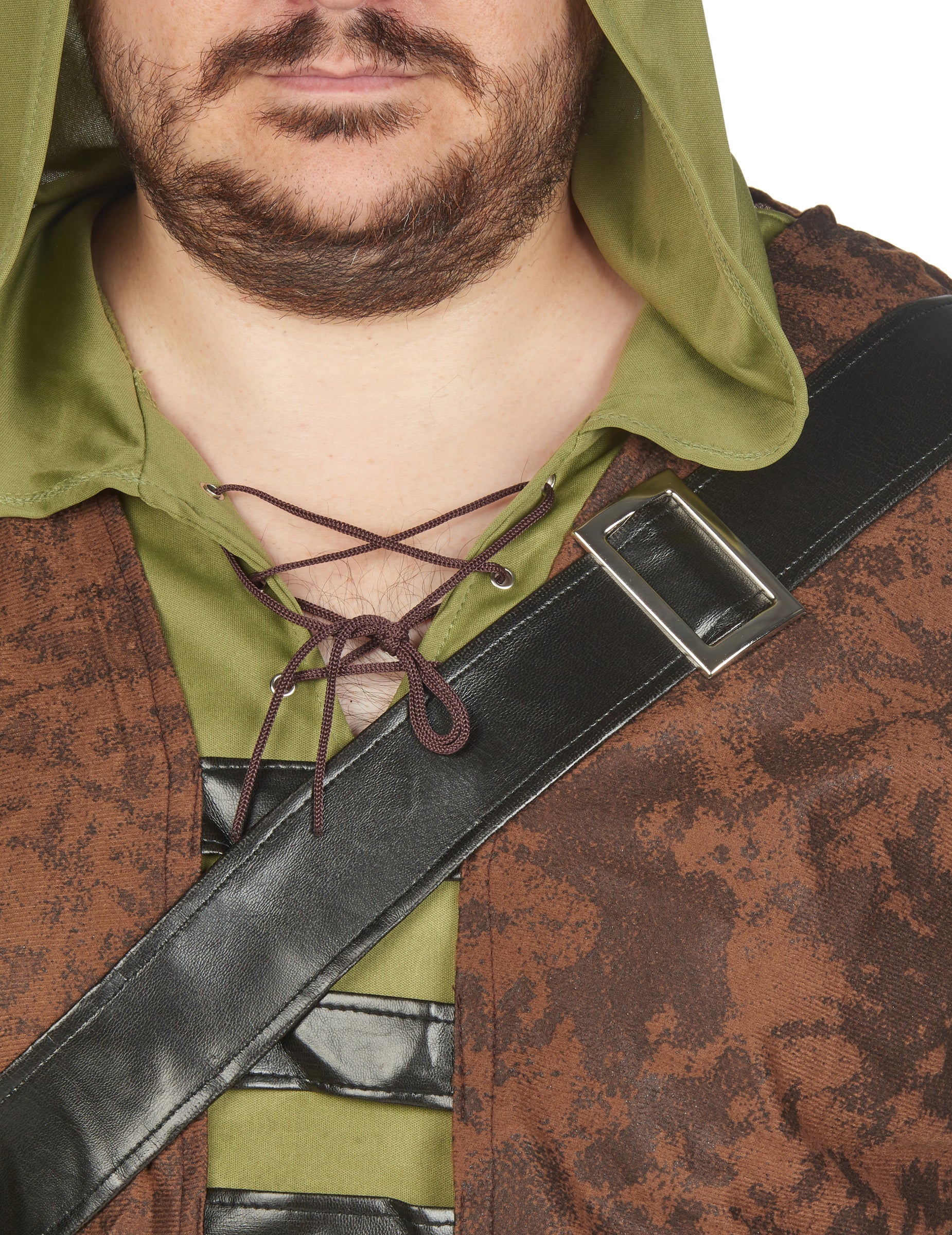 Ta velik kostum lesa je namenjen moškim. Vključuje vrh, pas in par sur-bootov. Vrh preobleke je dolga in kaki zelena. Krasi ga rjava zakriva imitacijska koža. Ta vrh vključuje kapuco z rjavimi vezalci na sprednji strani. Pas bo popolnoma ustrezal kostumu vašemu silhuete. Ima majhen žep, ki je neposredno prišit na njem. Zaprla se bo z uporabo praske. Končno bo celoten par sur-čepov dokončal. So temno rjave barve z imitacijskim usnjem. Ta kostum iz lesa tatova bo idealen za vaš tematski večer!