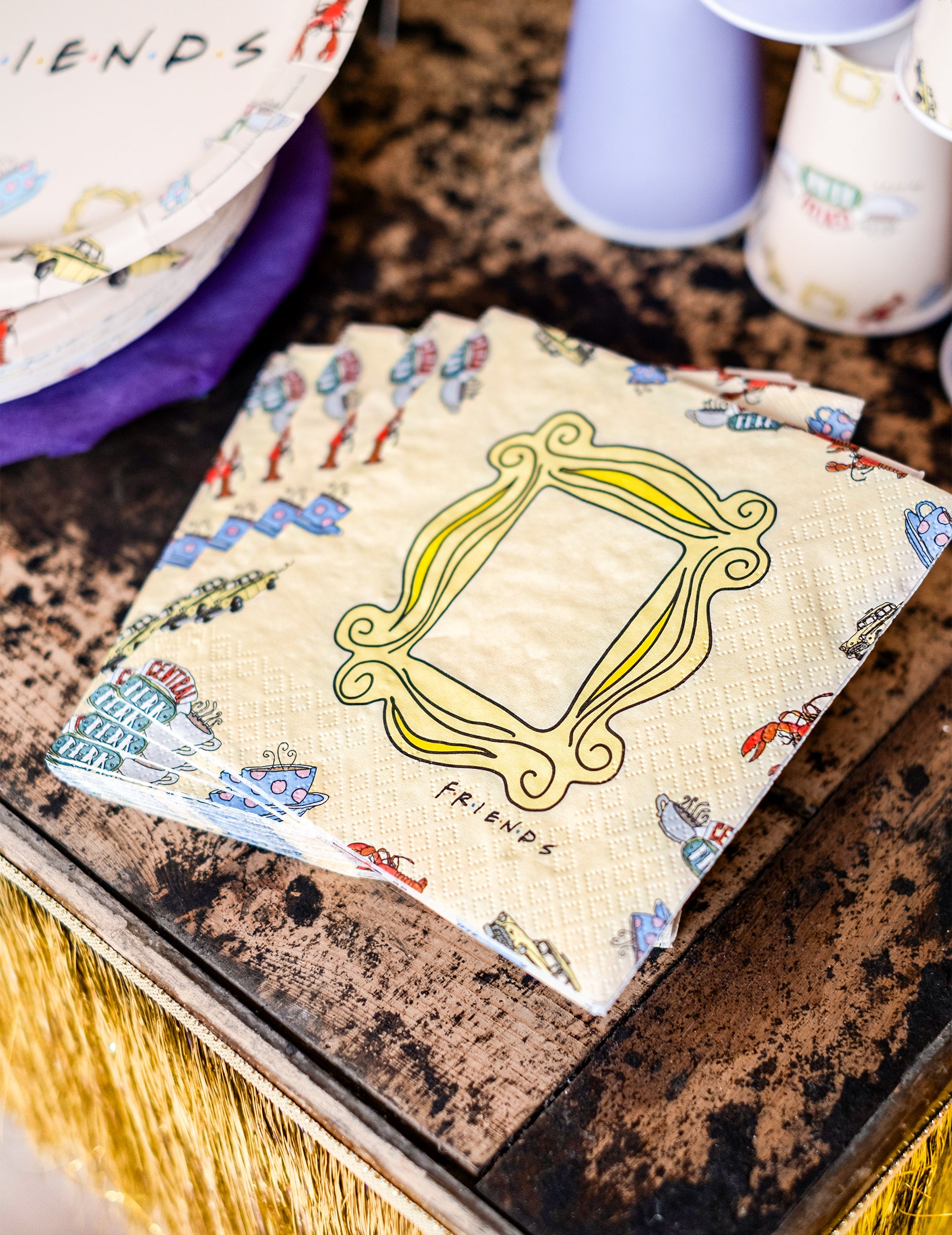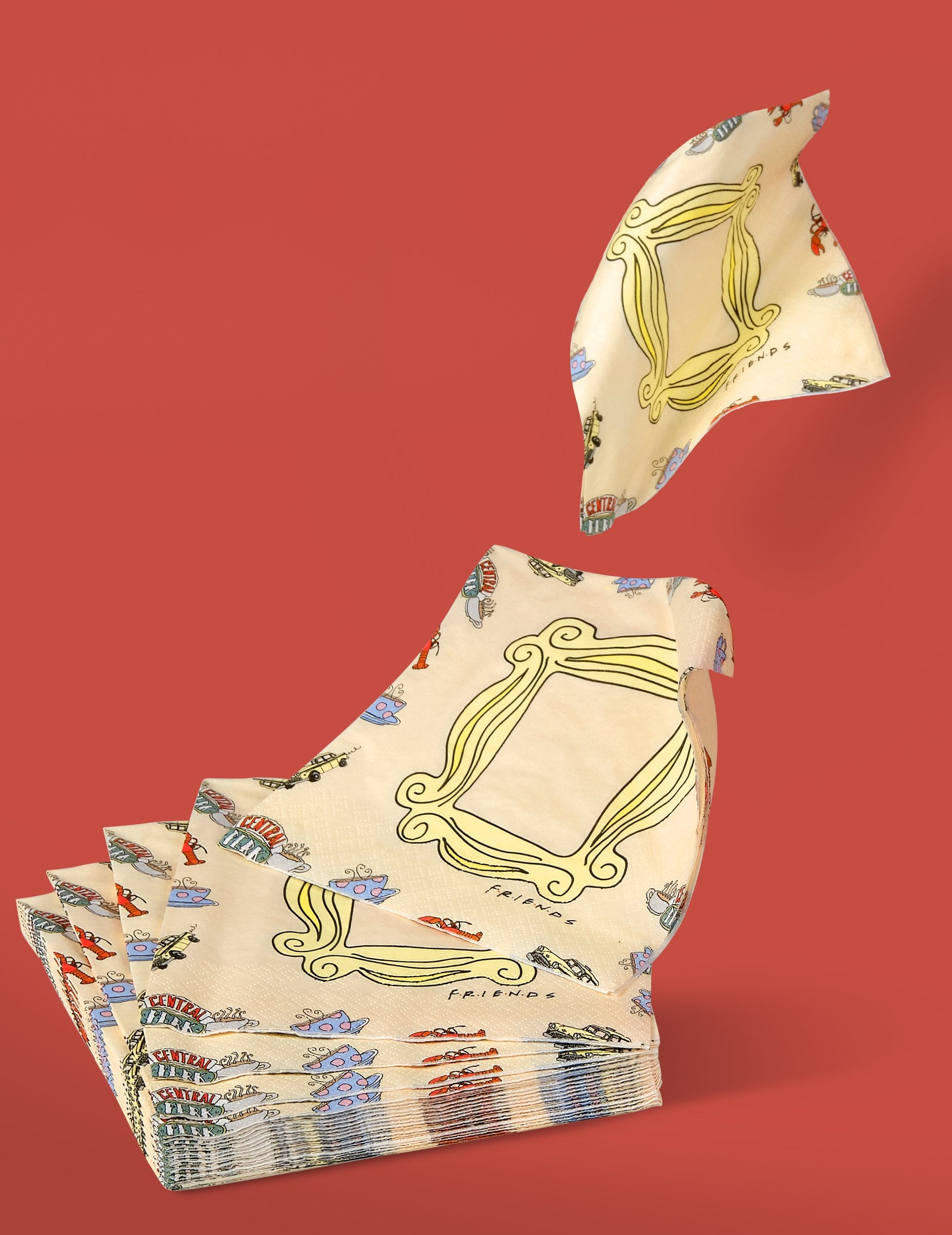 V skladu z uradnim prijateljem se te brisače prodajajo s serijo 20. V papirju imajo meritve približno 33x33cm. Vsi jih krasijo različni vzorci, kot so osrednji okvir, avtomobili, skodelice kave, pa tudi napis "Prijatelji". Ta serija bo med rojstnim dnevom s prijatelji odlično ustrezala dekoraciji mize!