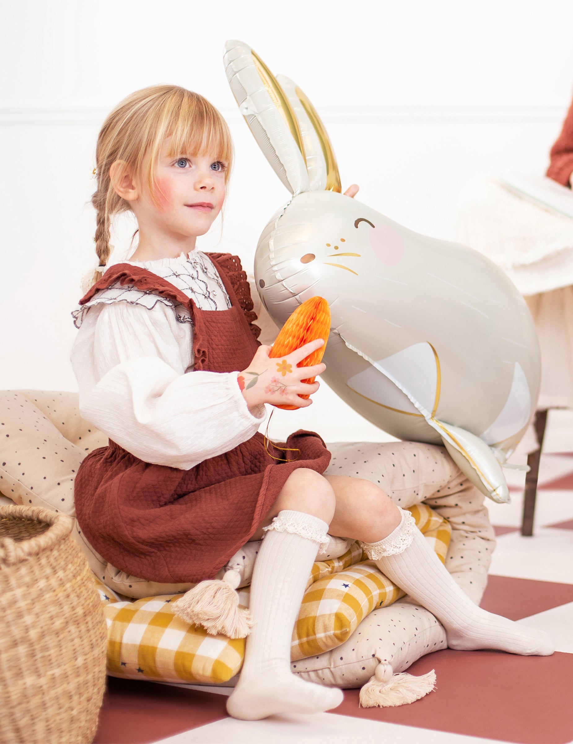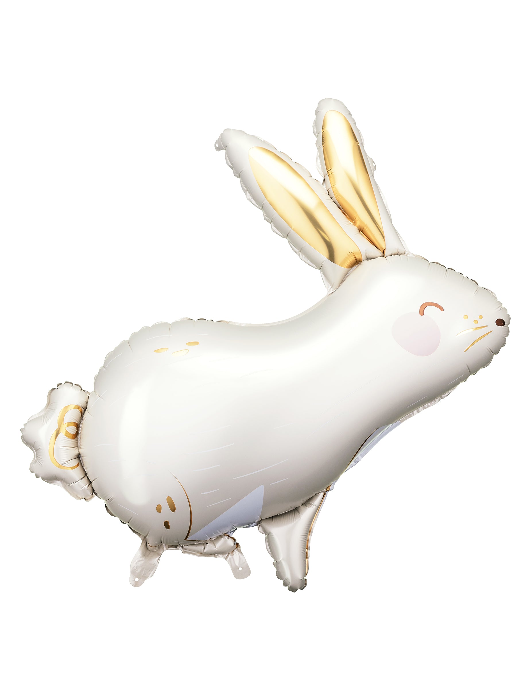 Sublimez votre décoration avec ce ballon en forme de lapin blanc géant de 70 x 72 cm. Conçu en aluminium résistant, il arbore une teinte blanc crème élégante contrastée par de jolies oreilles dorées. Ce ballon en forme de lapin est compatible avec un gonflage à l'air ou à l'hélium selon vos besoins. C'est l'accessoire parfait pour agrémenter un anniversaire sur le thème des animaux ou pour fêter Pâques avec style !