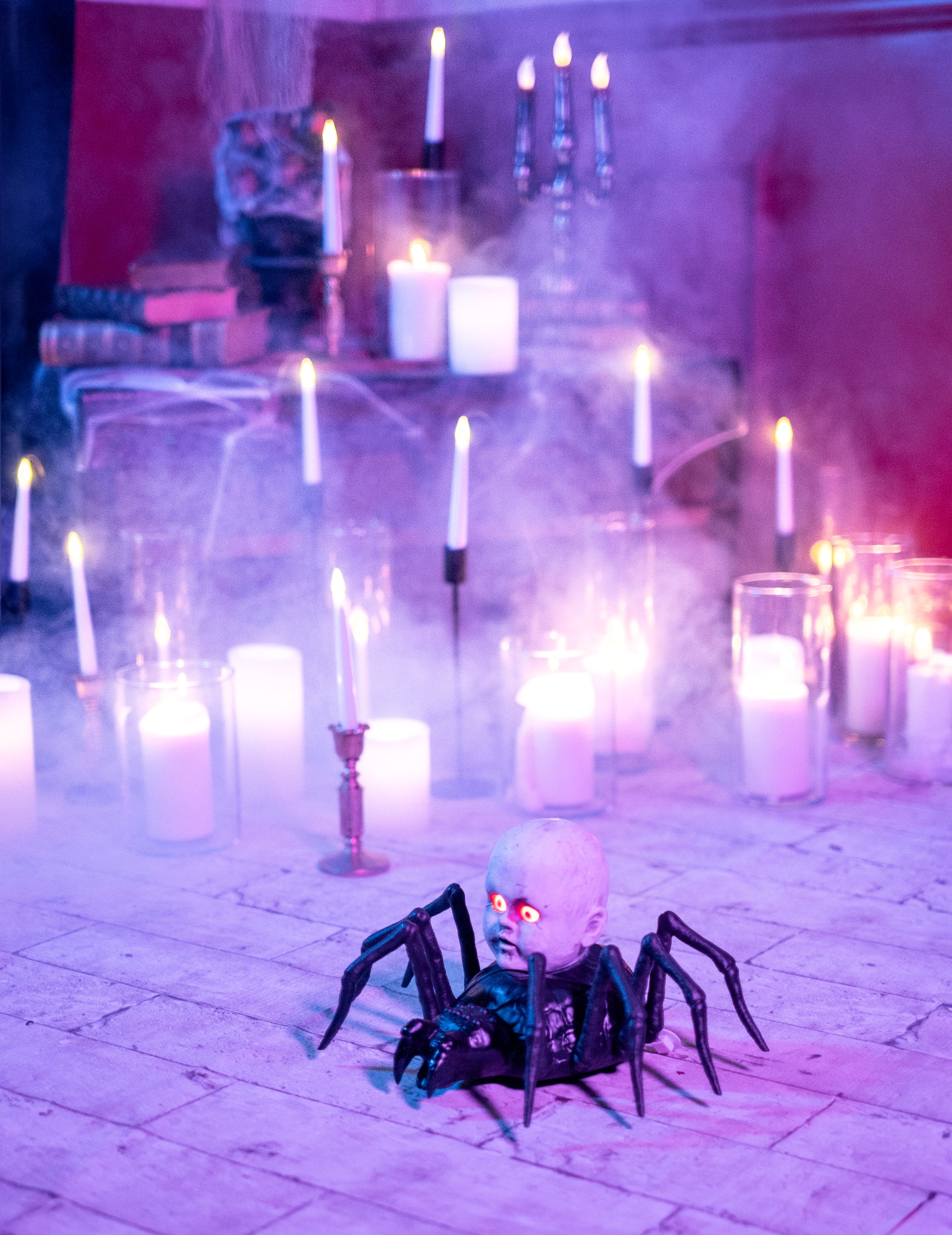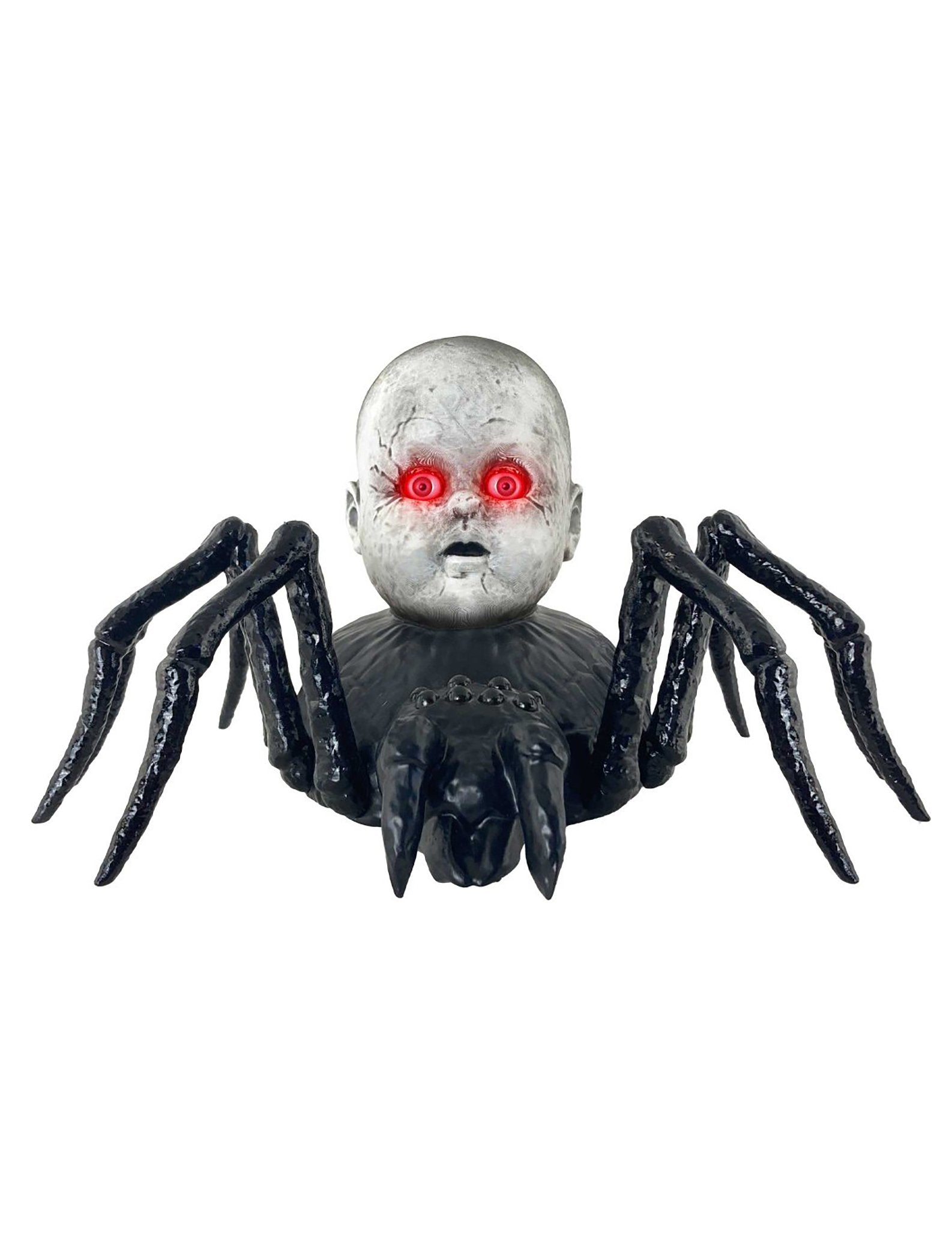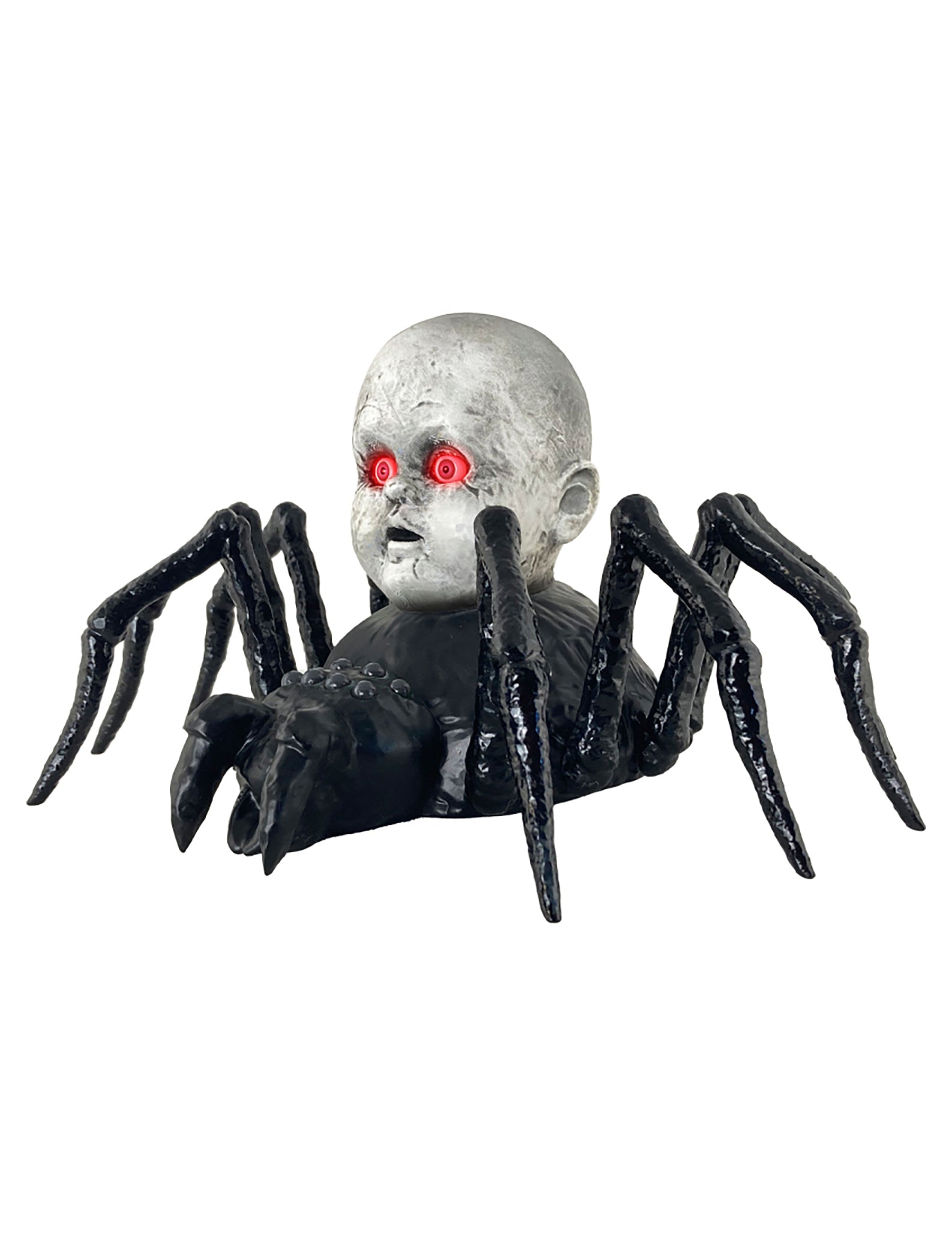 Ta dekoracija predstavlja animiranega plazečega pajka za lutke. Njegova meritev je visoka približno 19 cm, široka 33 cm in globoka 23 cm. Na celoti je črno -bela barva, ki jo spremljajo rdeče oči! Lutka Spider se bo začela med močnim hrupom v sosednjih vratih (kot aplavz) in mehansko delovanje se bo začelo! Premaknila se bo v vaši sobi, spremljali jo bodo lahki učinki, zlasti z rdečimi očmi, medtem ko bo grozljive krike potiskala! Ta dekoracija za pajkove lutke bo idealna za izpopolnjevanje dnevne sobe med večerjo noč čarovnic, obkrožen s prijatelji!