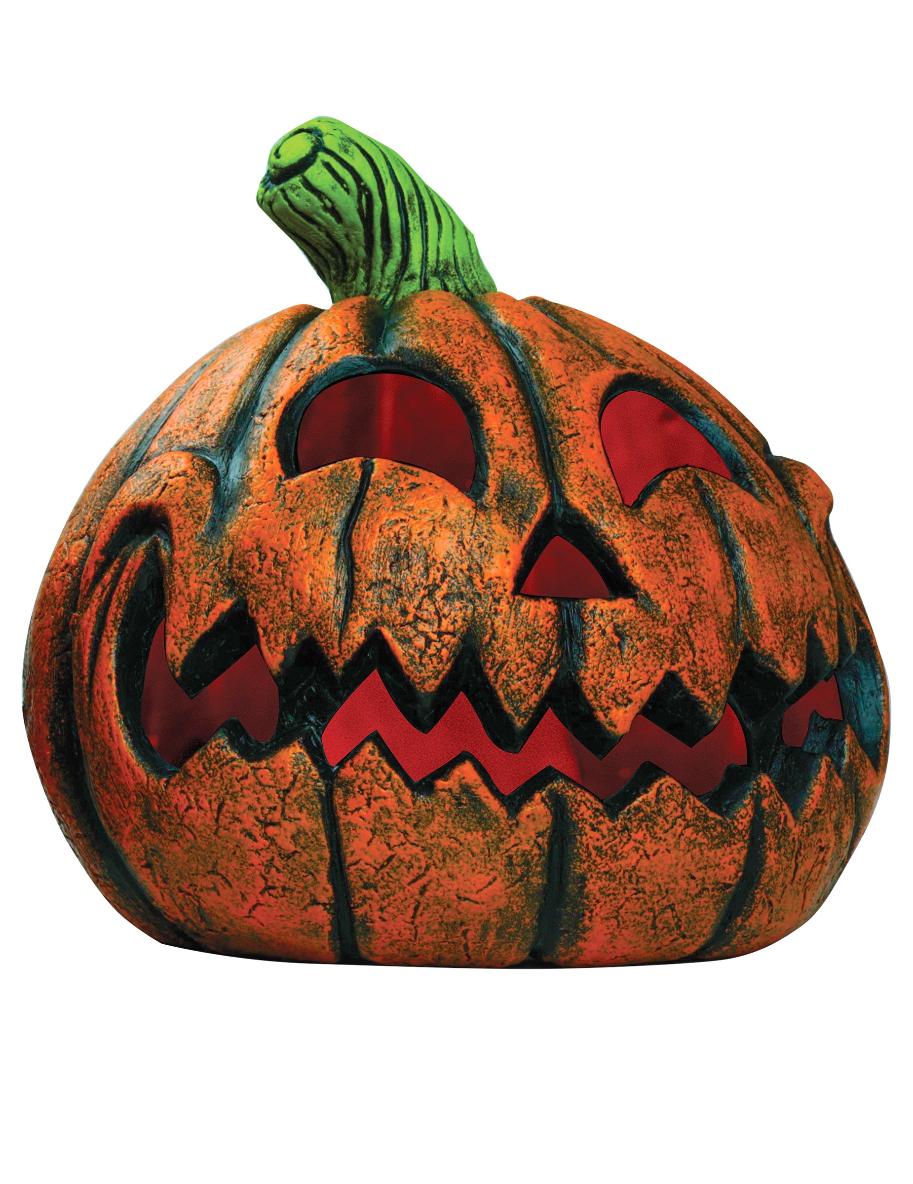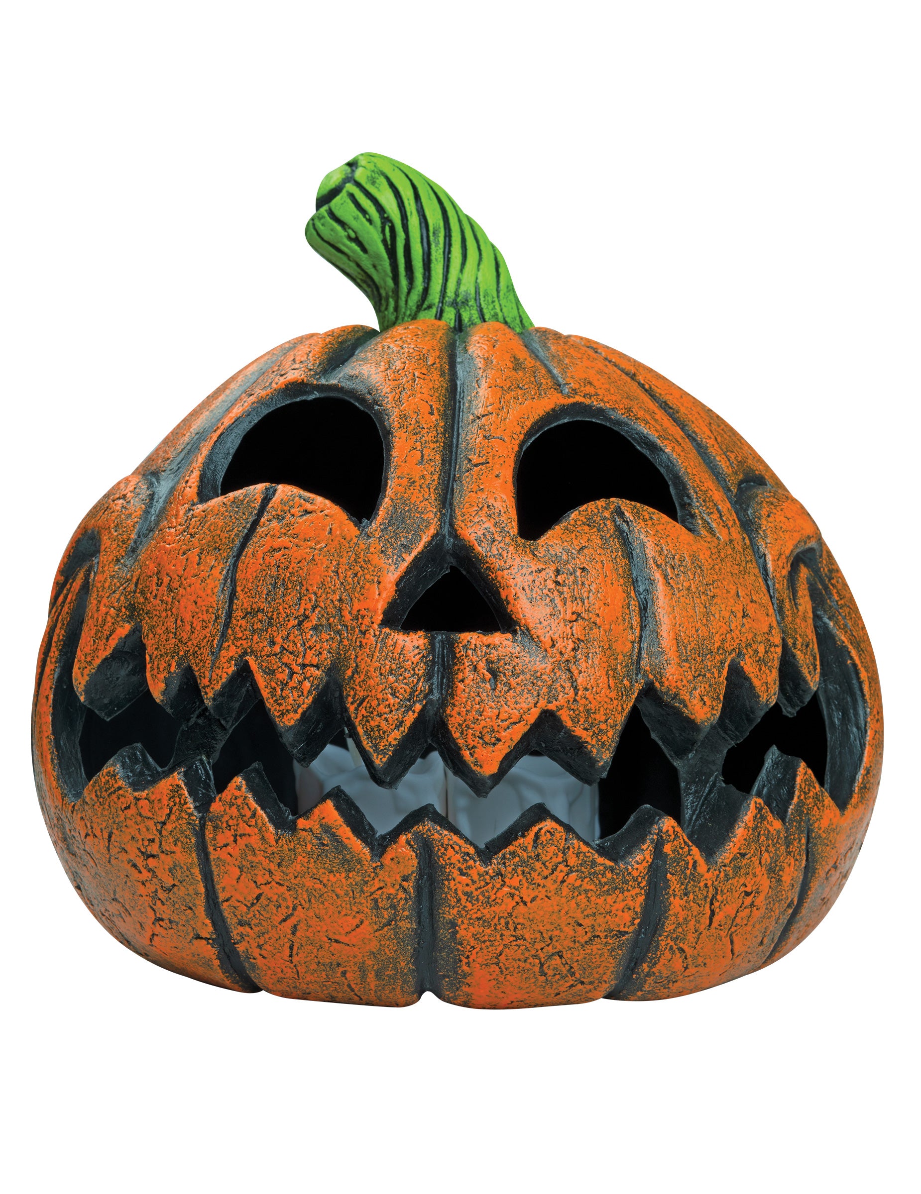 Ta dekoracija je 30 x 24 x 73 cm. To je bučna dekoracija in narejena iz smole. Pobarvana je ročno in predstavlja strašljiv nasmeh. Na primer ga lahko osvetlite z LED svečami. Ta buča je kot nalašč za vašo dekoracijo med zabavo za noč čarovnic!