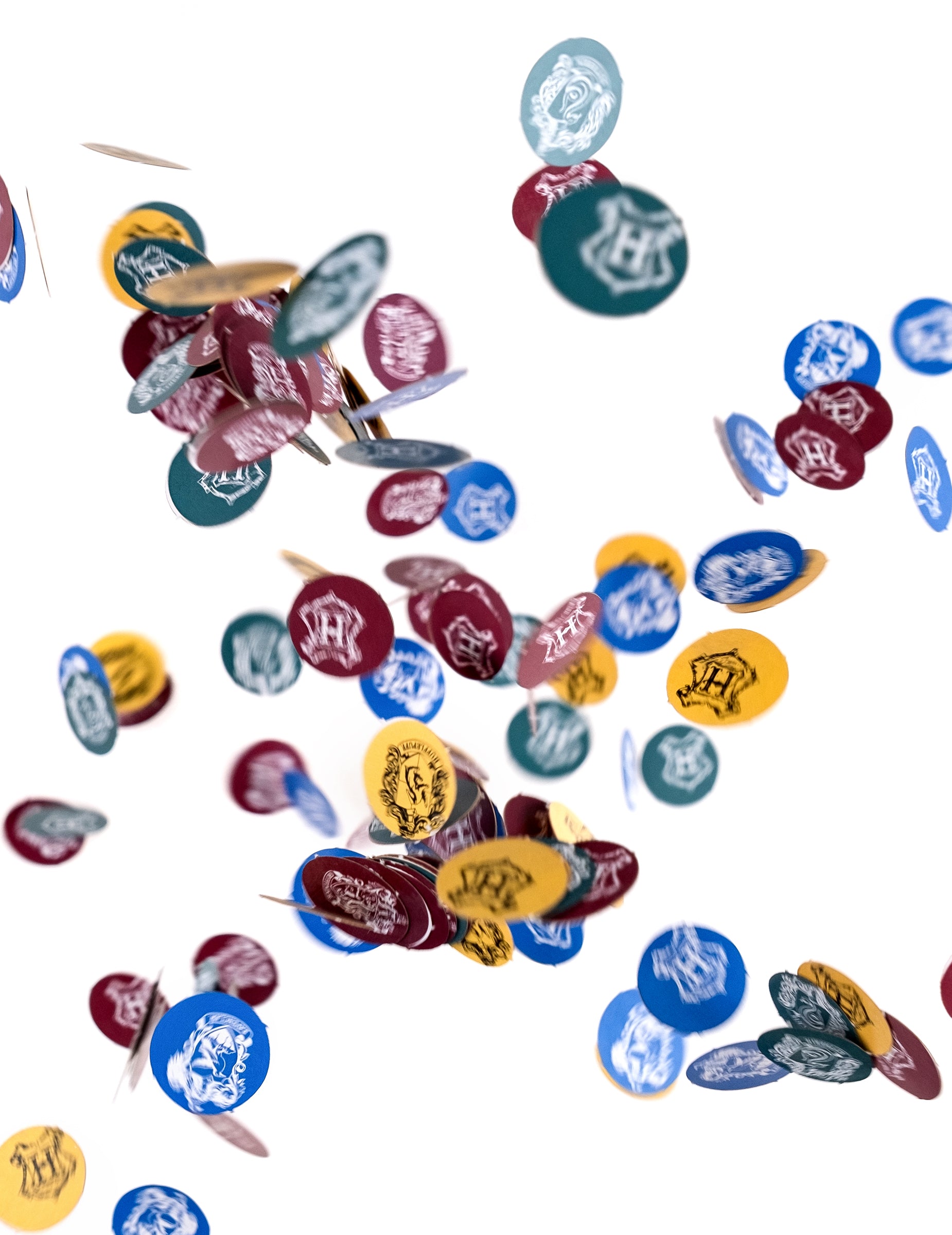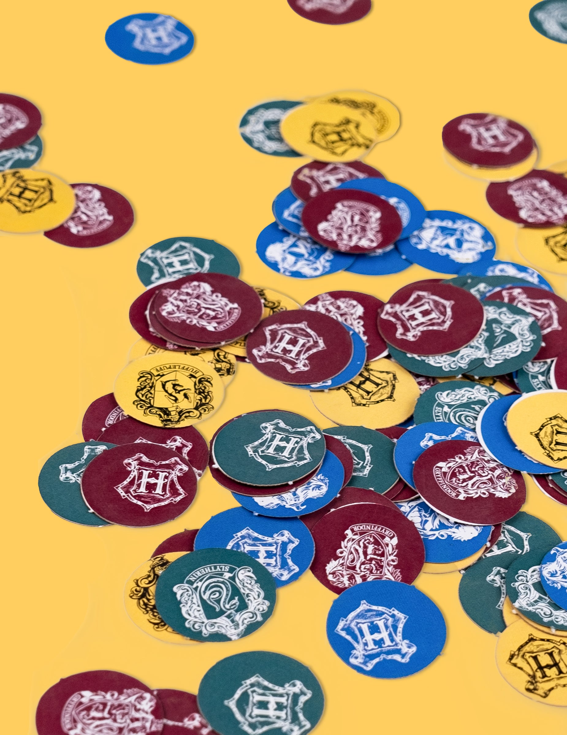 Po uradni licenci Harryja Potterja ta sklop vključuje 160 kartonskih konfetov s premerom 2 cm. Konfeti so barv različnih hiš šole Hogwarts Wizard. Idealni bodo za dokončanje vaše dekoracije mize za katero koli temo Harryja Potterja!