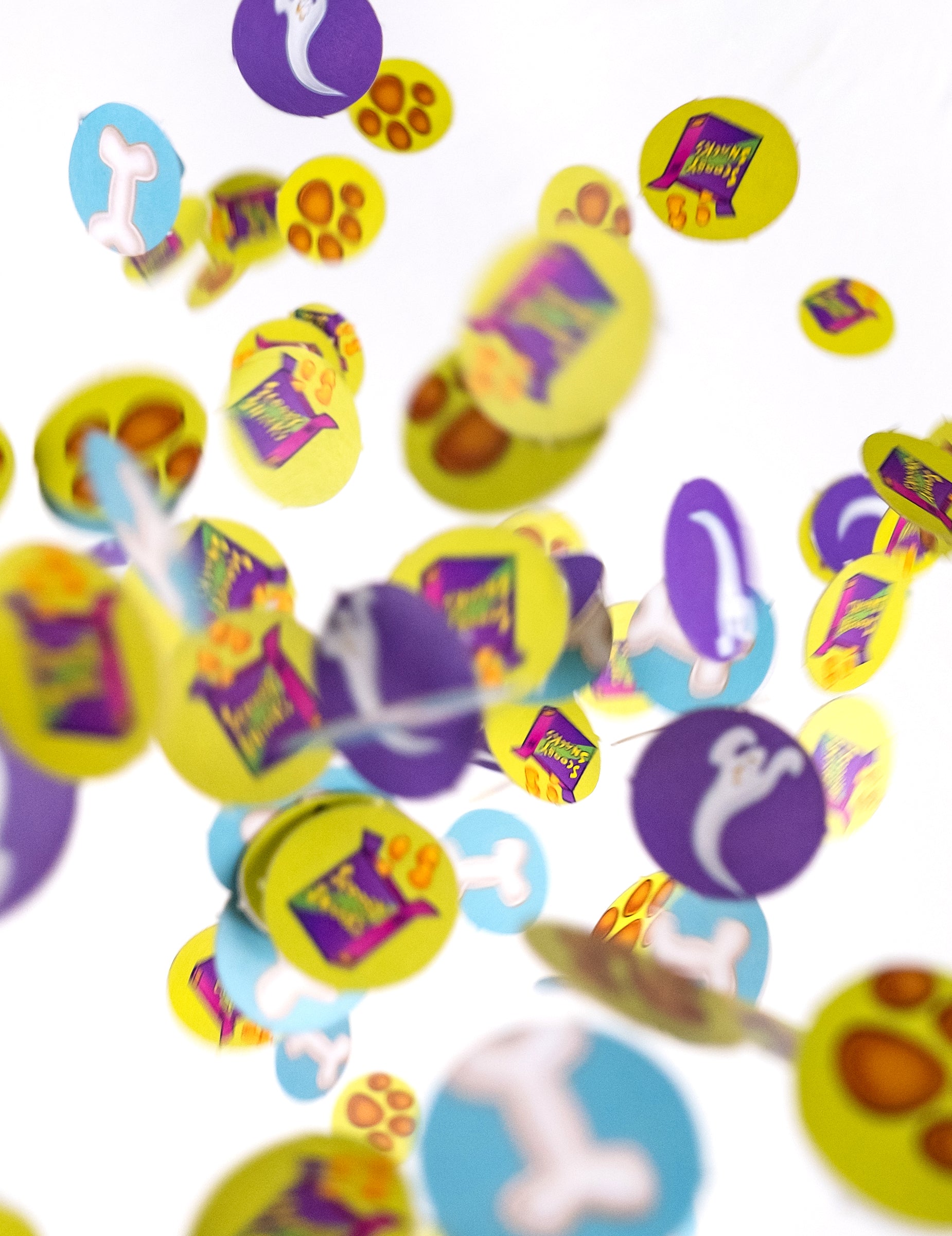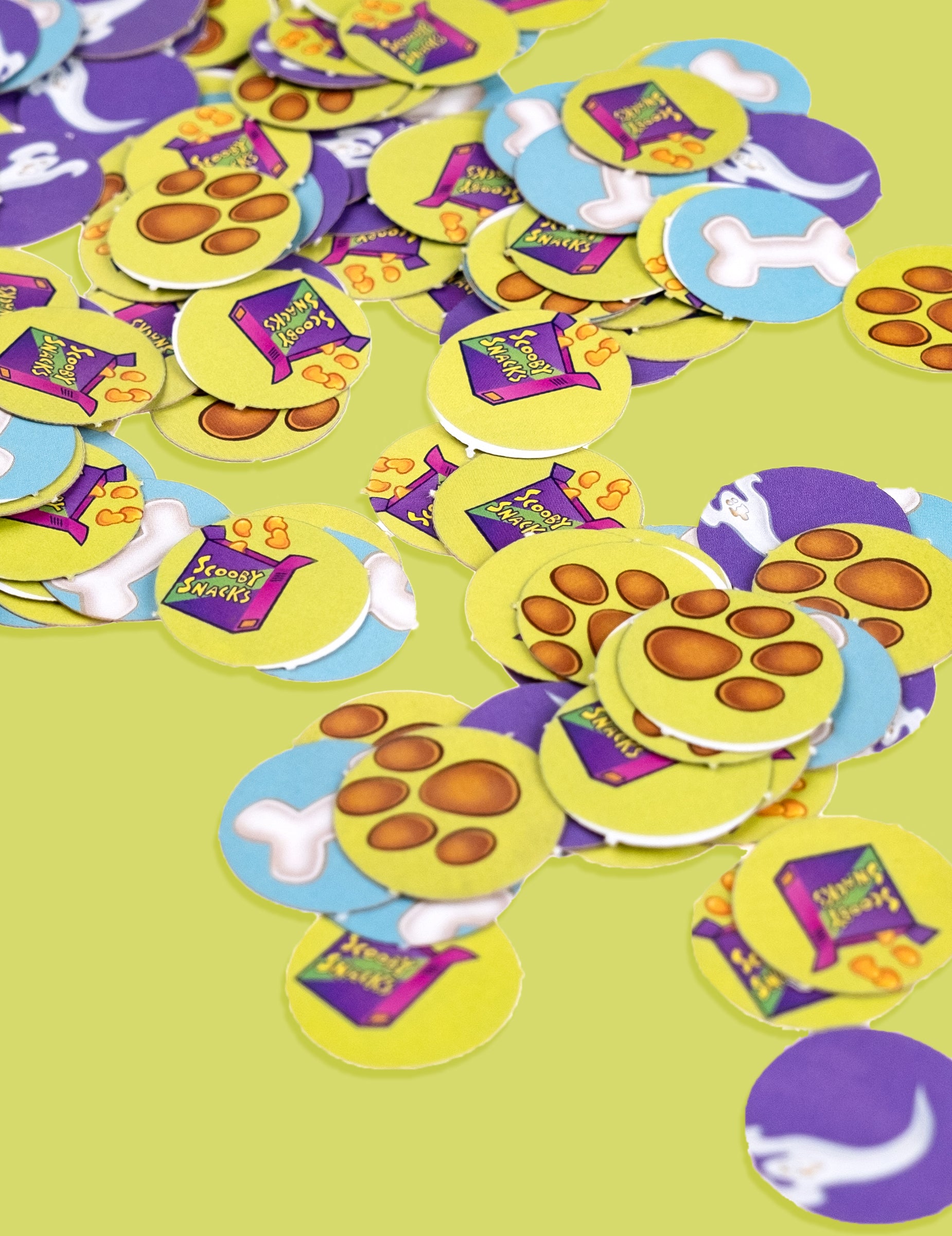 Ta sklop vključuje 160 kartonskih konfetov pod uradno licenco Scooby-Doo. Konfeti predstavljajo različne vzorce glede na risanko Scooby-Doo. Premera so 2 cm. Idealni bodo za dokončanje vaše dekoracije na temi Scooby-Doo na vašo mizo!