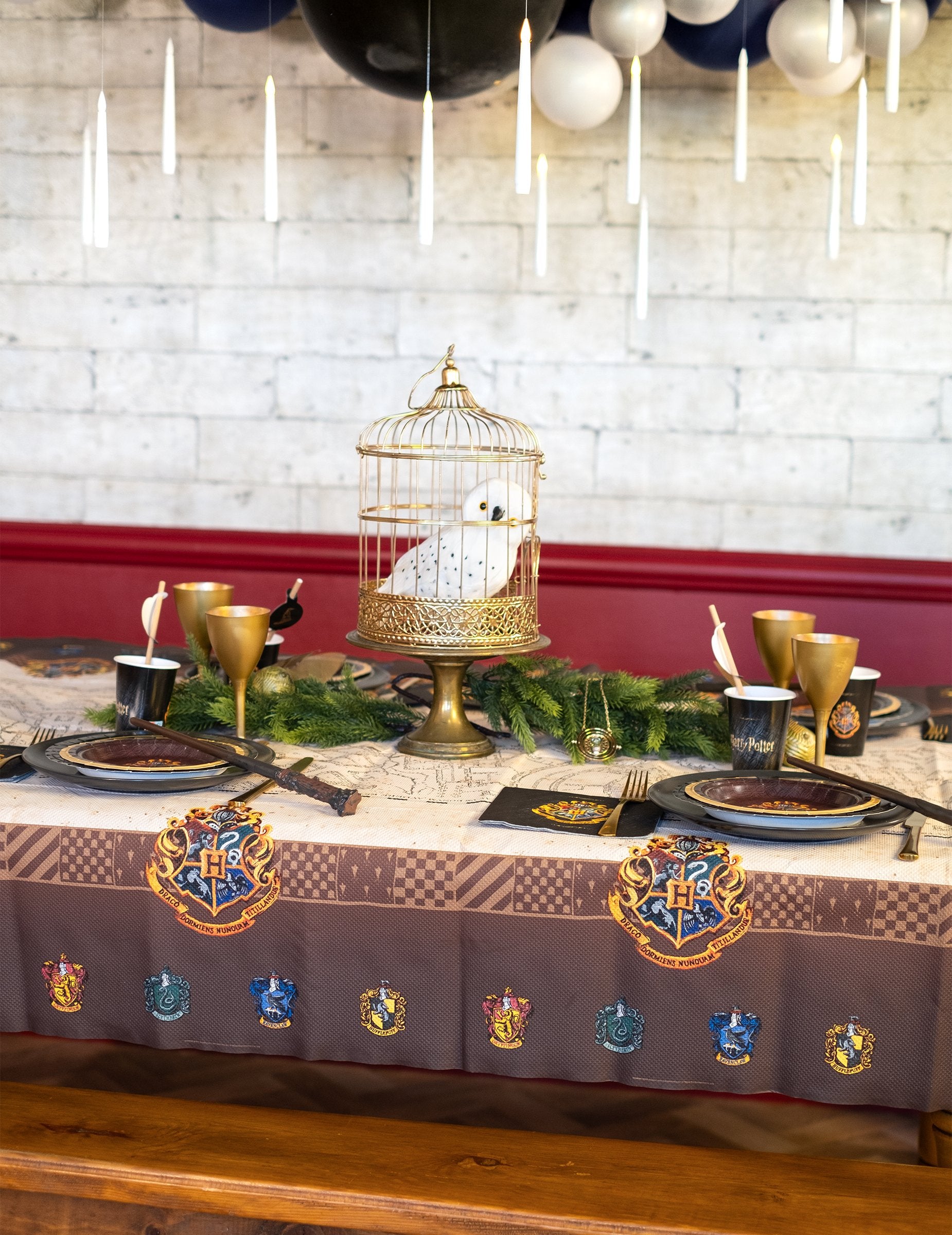 Z meritvijo približno 120 x 180 cmTa čudovit prt ima več motivov znanih hiš čarovniške šole. Vključuje logotipe hiš Gryfondom, Pihpuff, Drznčlaw in Spolzgad.