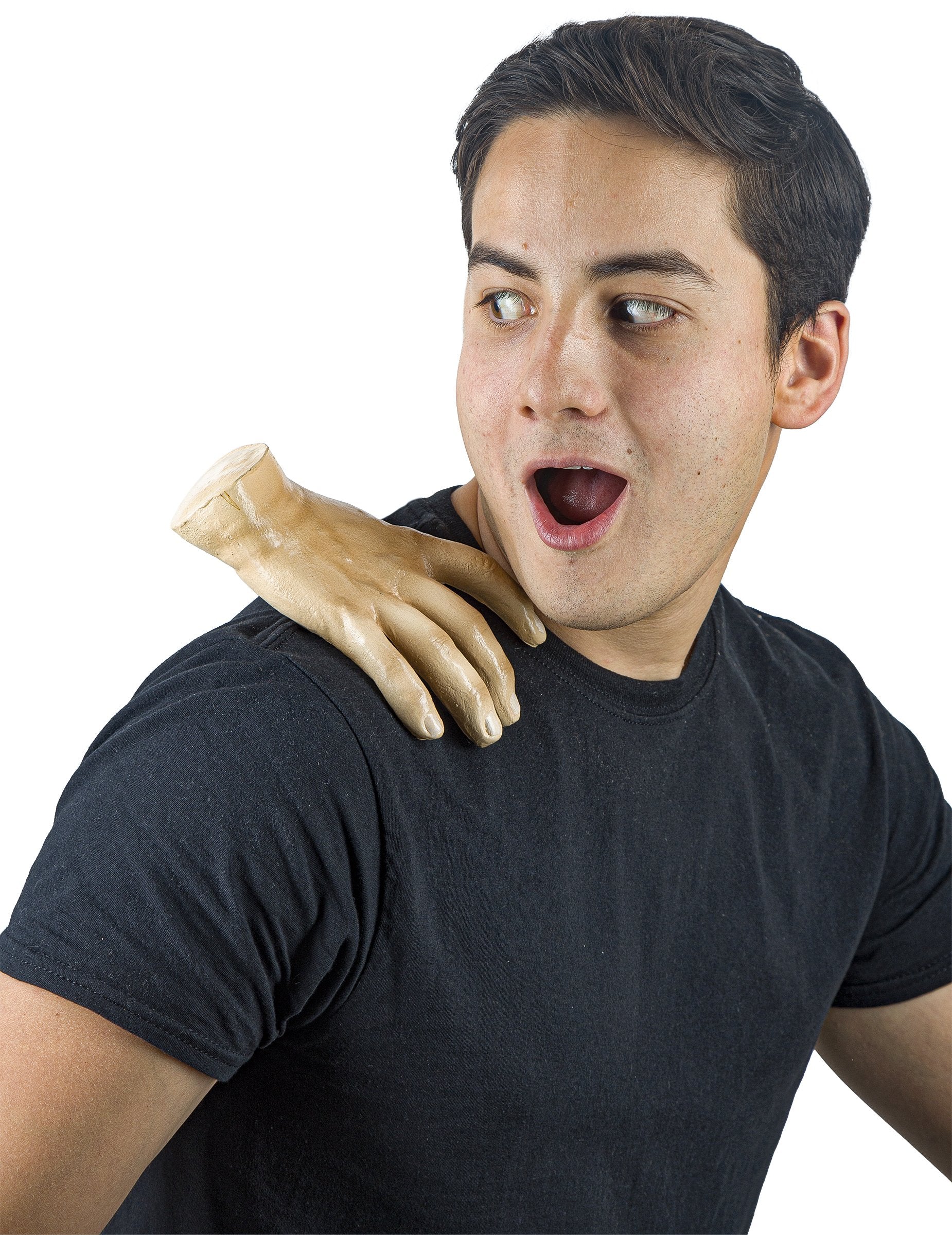 Cet accessoire pour Halloween est une fausse main coupée à porter sur l'épaule. Elle est en latex pour un effet réaliste. La main est creuse et munie d'une pince pour se fixer directement sur un vêtement. Elle est de couleur beige clair sur l'ensemble pour un effet glaçant. Cette petite main coupée sera idéale pour compléter votre tenue d'Halloween !