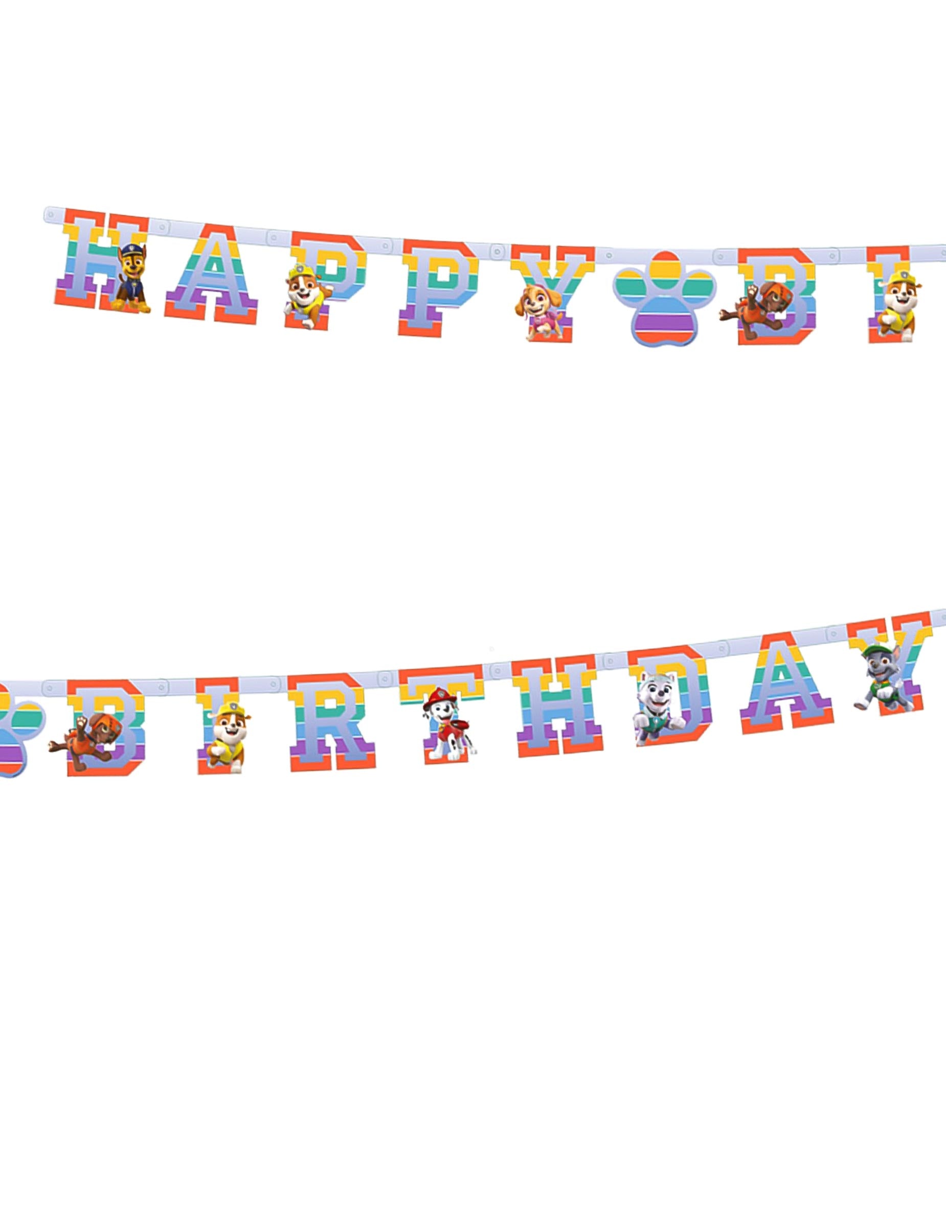 Ta papir je pod uradno licenco Patrol Patrol. Meri približno 180 x 15 cm. Predstavlja besedno zvezo "vesel rojstni dan", okrašeno s šapo v središču. Garland je barvita in vsaka črka se polepša s podobami likov patrulje. Kot nalašč bo dodajanje barvnega pridima svoji patruljni zabavi!