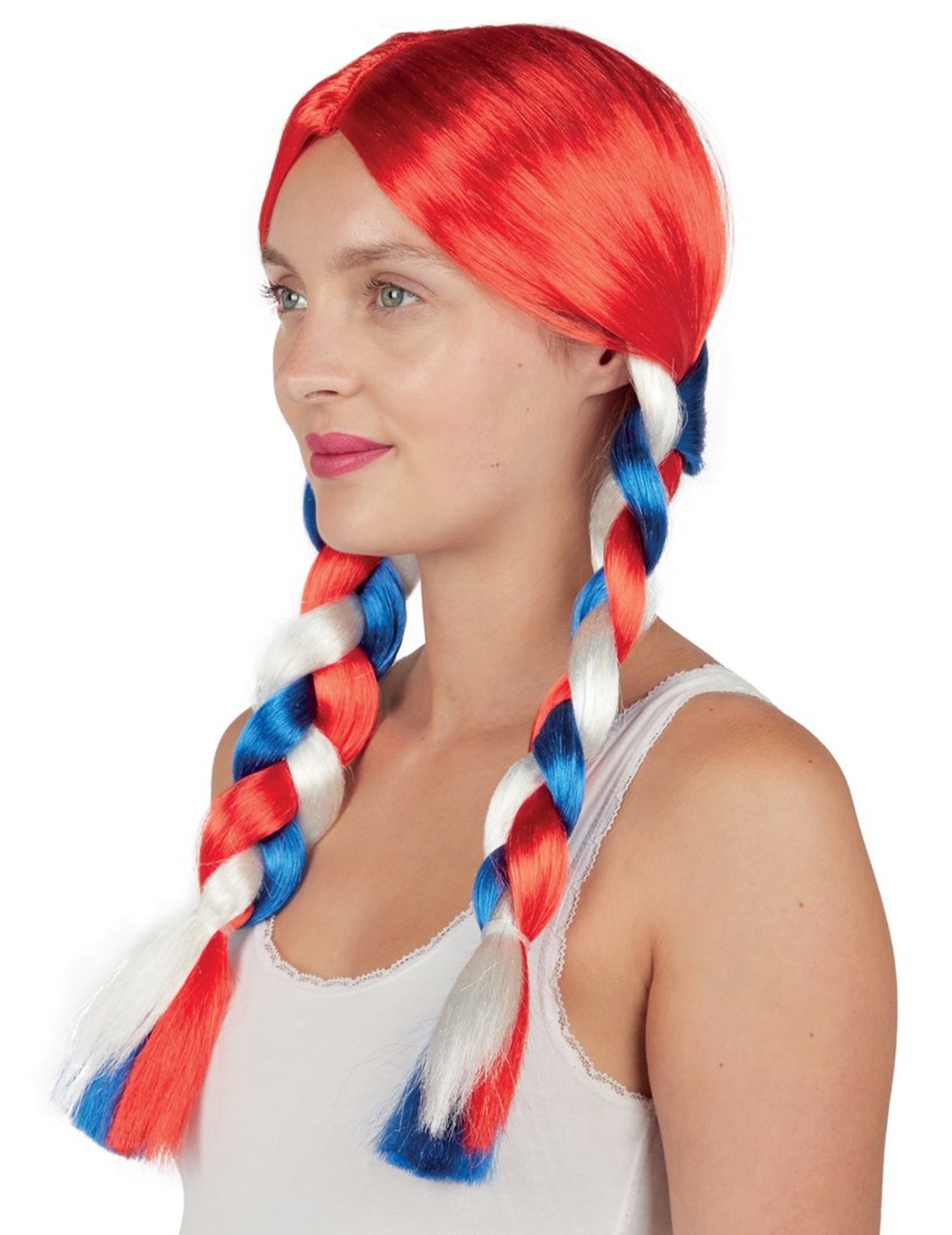 Je obarvan modra, bela In rdeča, barve Francoska zastavaV laseh ima dve kitki.
