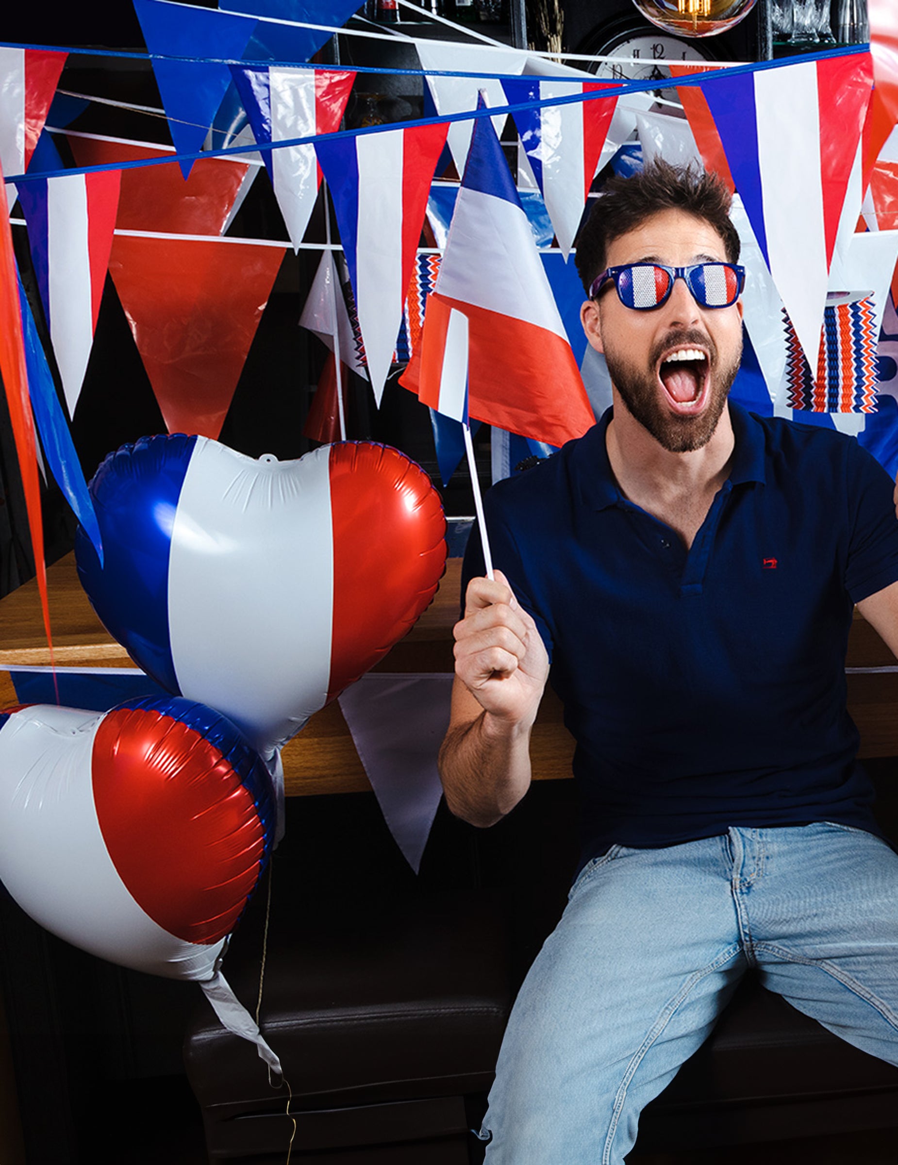 Ta balon je izdelan iz aluminija in meri približno 40 cm. V obliki srca je v barvah francoske zastave: modra, bela in rdeča. Ta podporna žoga bo kot nalašč za dokončanje dekoracije vaše sobe med 14. julijem ali športnim tekmovanjem, kot so olimpijske igre ali nogometni svetovni pokal!