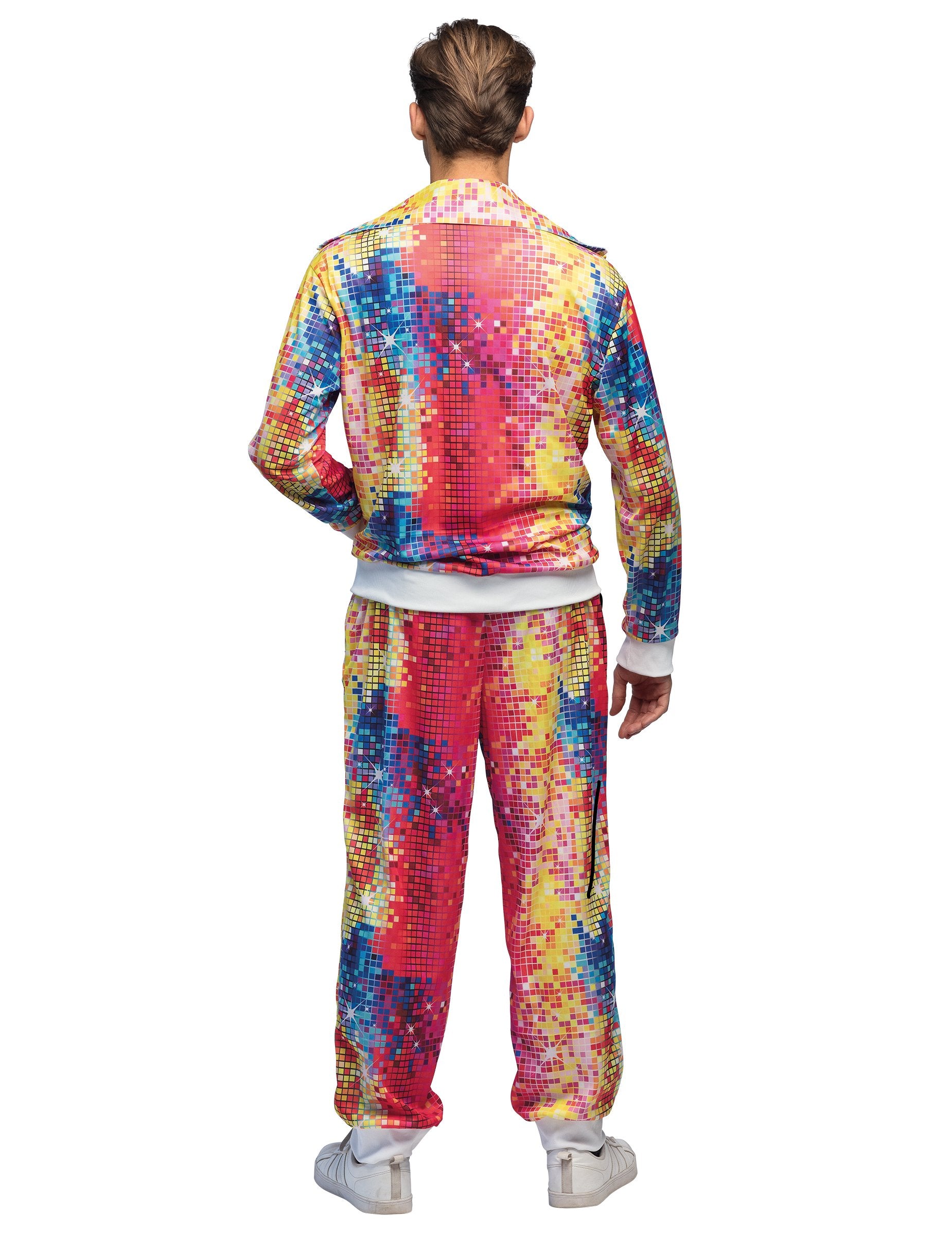 Ta diskoteka je namenjena moškim in je sestavljena iz zadrge in hlače. Jakna in hlače imajo večbarvni kroglični kroglični tisk. Jakna ima zadrgo, ki vam bo omogočila enostavno zapiranje. Konci so elastični in imajo bele meje, ki dajejo športni videz 80 -ih.
