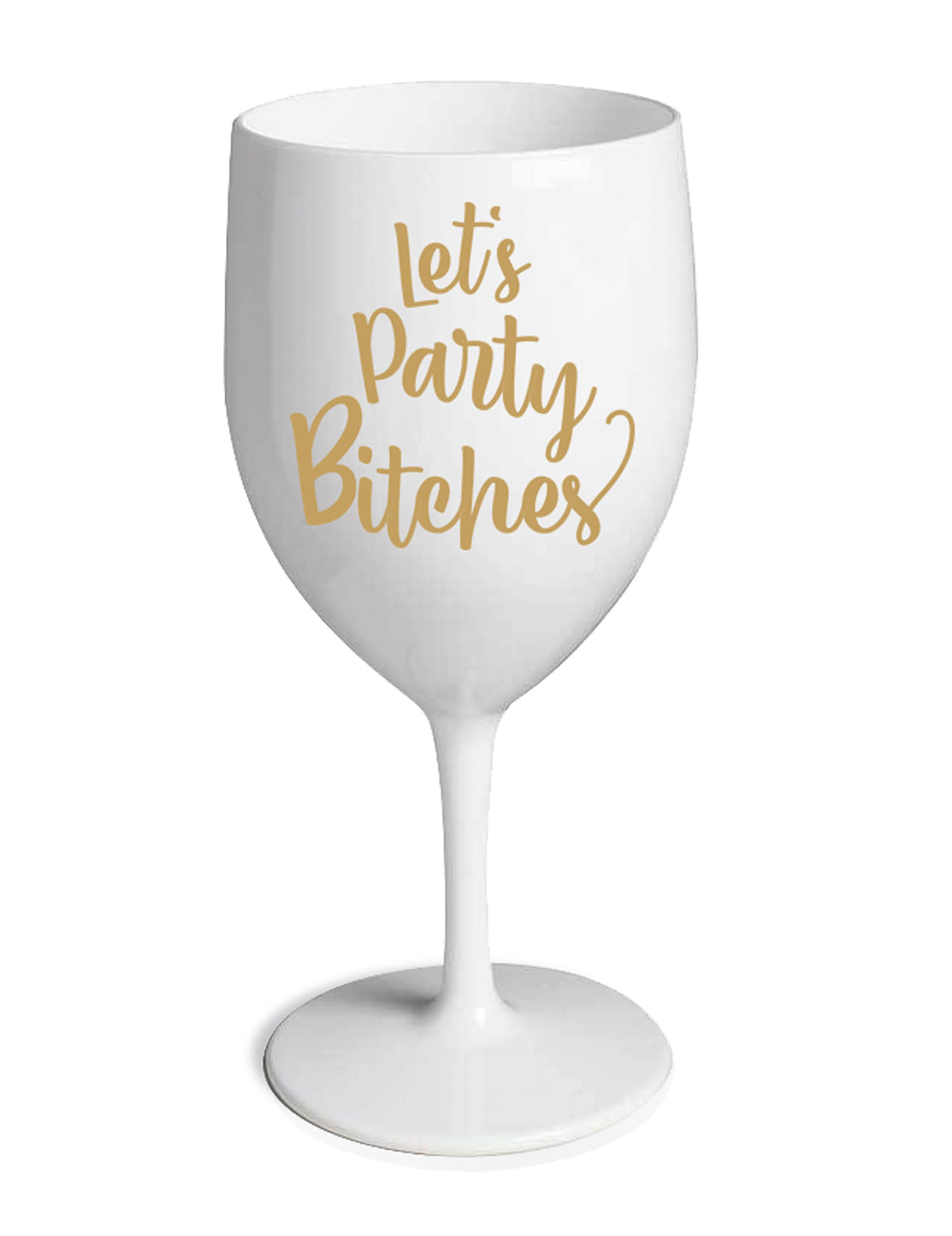 Ta kozarec je izdelan iz odpornega PVC in ima zmogljivost 50 Cl. V obliki vinskega kozarca je bela in je okrašena z besedno zvezo "Naj se zabave" z zlatimi krasnimi črkami. Ta kozarec je kot nalašč za dodajanje zabavnega dotika ob večerih ali ob koncu celibata!