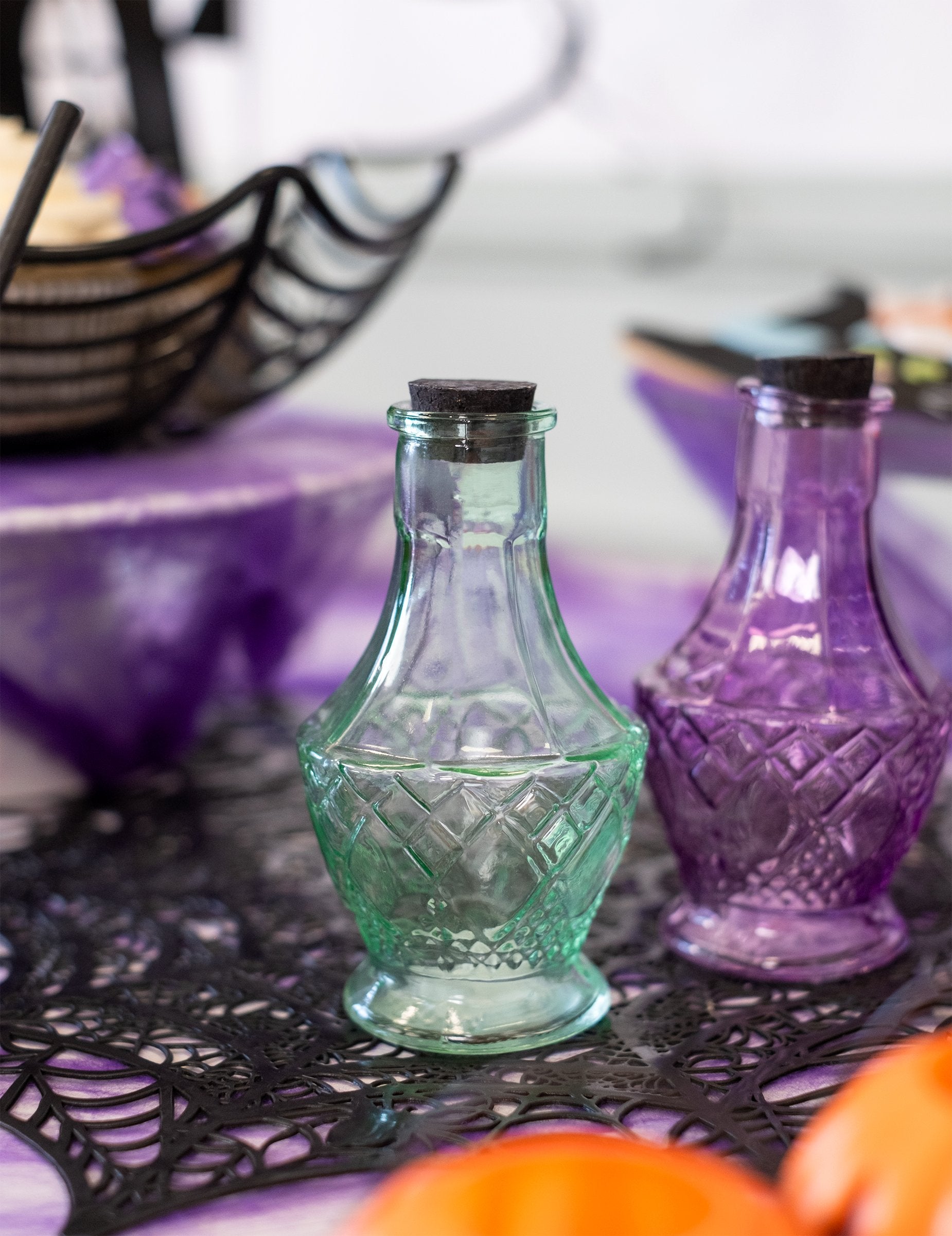 Ta steklena viala, ki meri 6,5 cm premer in 11,5 cm Ta visoka steklenica ima zelen odtenek. Zamašek iz plute v rustikalnem slogu ustvarja nepredušno tesnilo, ki je idealno za shranjevanje vaših začaranih napojev. To steklenico lahko uporabljate na različne načine: kot osrednji okras ali kot okrasni dodatek v čarovniškem laboratoriju. S to steklenico in zamaškom iz plute dodajte kanček čarovnije svoji zabavi za noč čarovnic. Idealna za ustvarjanje očarljivega vzdušja na vaših prazničnih ali nočnih srečanjih.