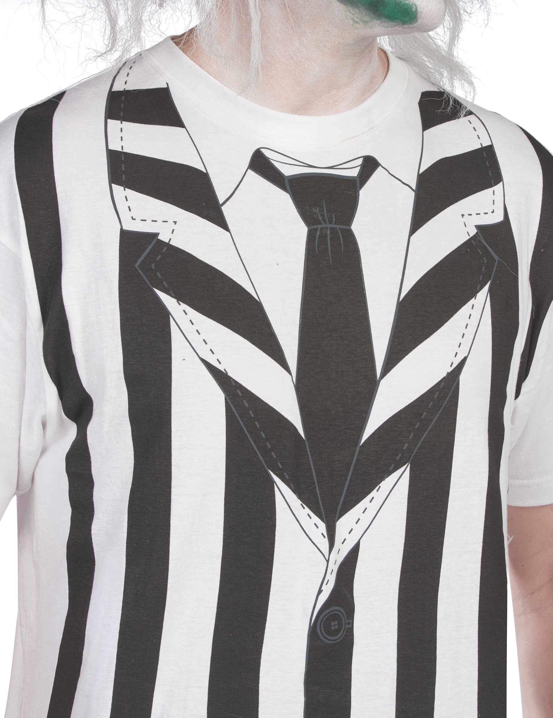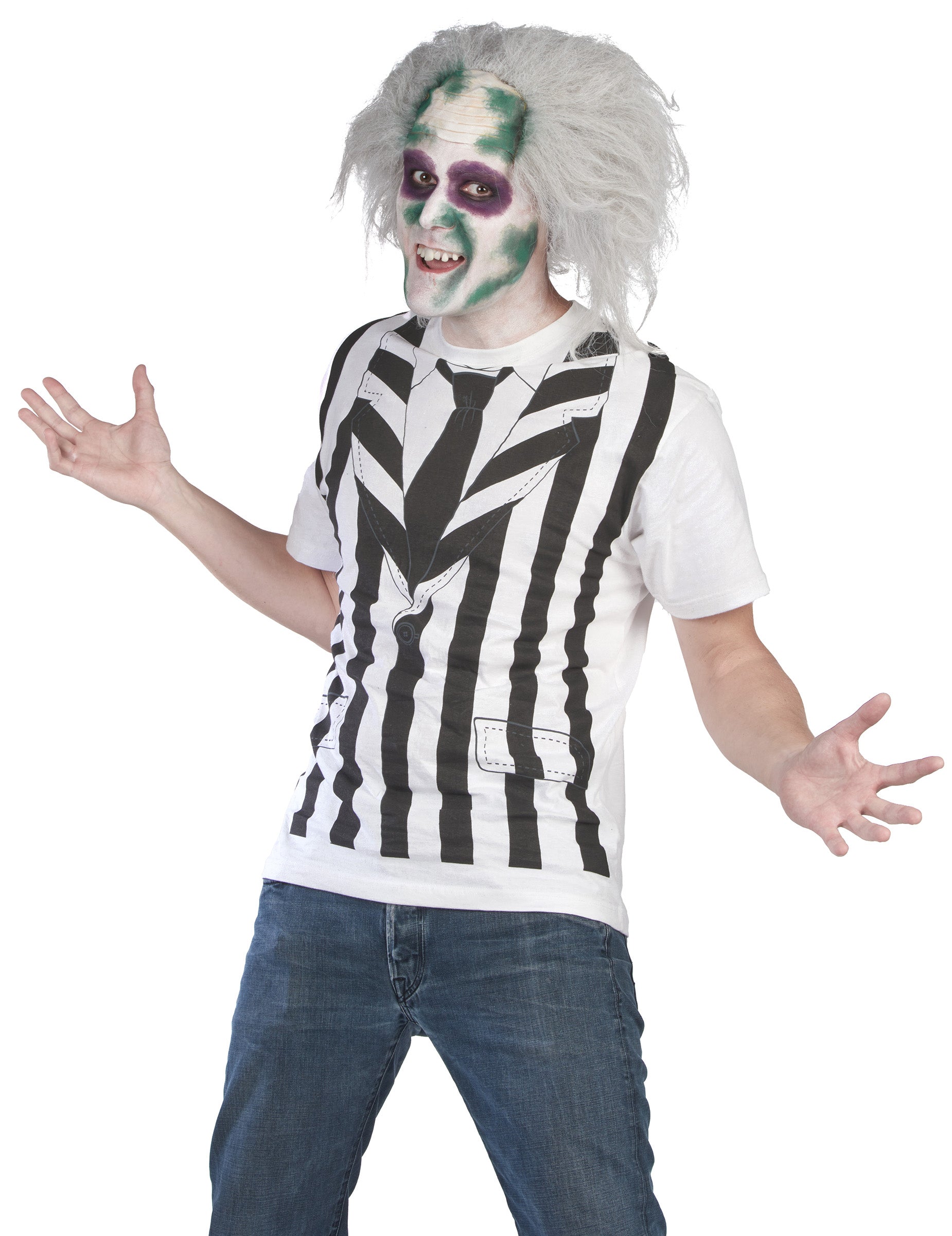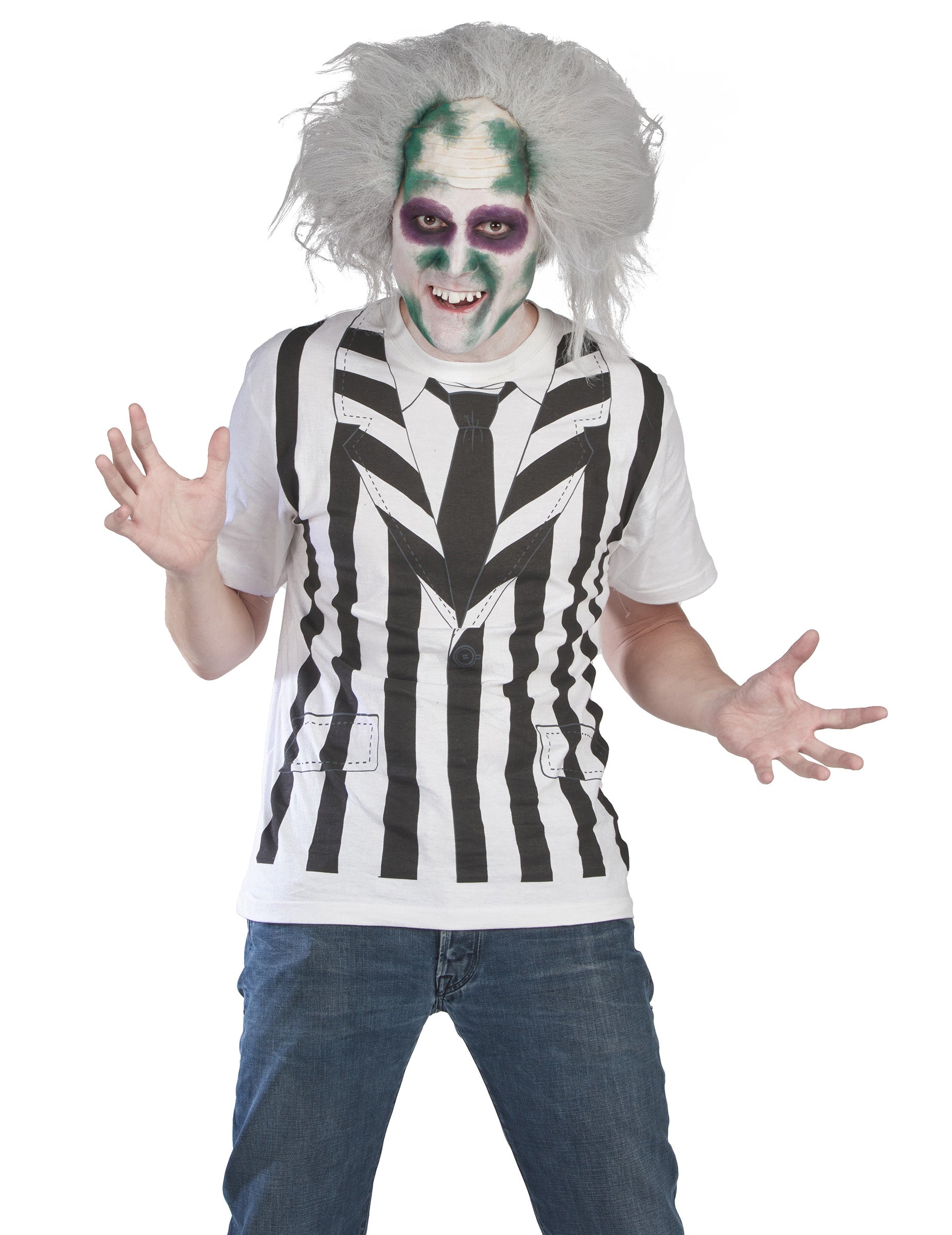 Ta komplet preoblečena in odrasla lasulja Beetlejuice je pod uradno licenco Beetlejuice in je sestavljena iz tiskane majice in lasulje, kot nalašč za utelešenje slavnega ekscentričnega značaja. Majica je s kratkimi rokavi in ​​spredaj ima tisk, ki predstavlja črno-beli črtasti kostum znamenitega Ghost iz kinematografije: Beetlejuice. Lasulja je vključevala tudi s svojimi razgaljenimi lasmi in njenim edinstvenim slogom, odlično dopolnjuje videz Beetlejuice. Enostaven za nalaganje, vam omogoča, da se takoj spremenite v ta legendarni in nepozaben lik. S to preobleko in lasuljo Beetlejuice se pripravite pritegniti vse oči in sejati kaos, kot je Beetlejuice med noč čarovnic!