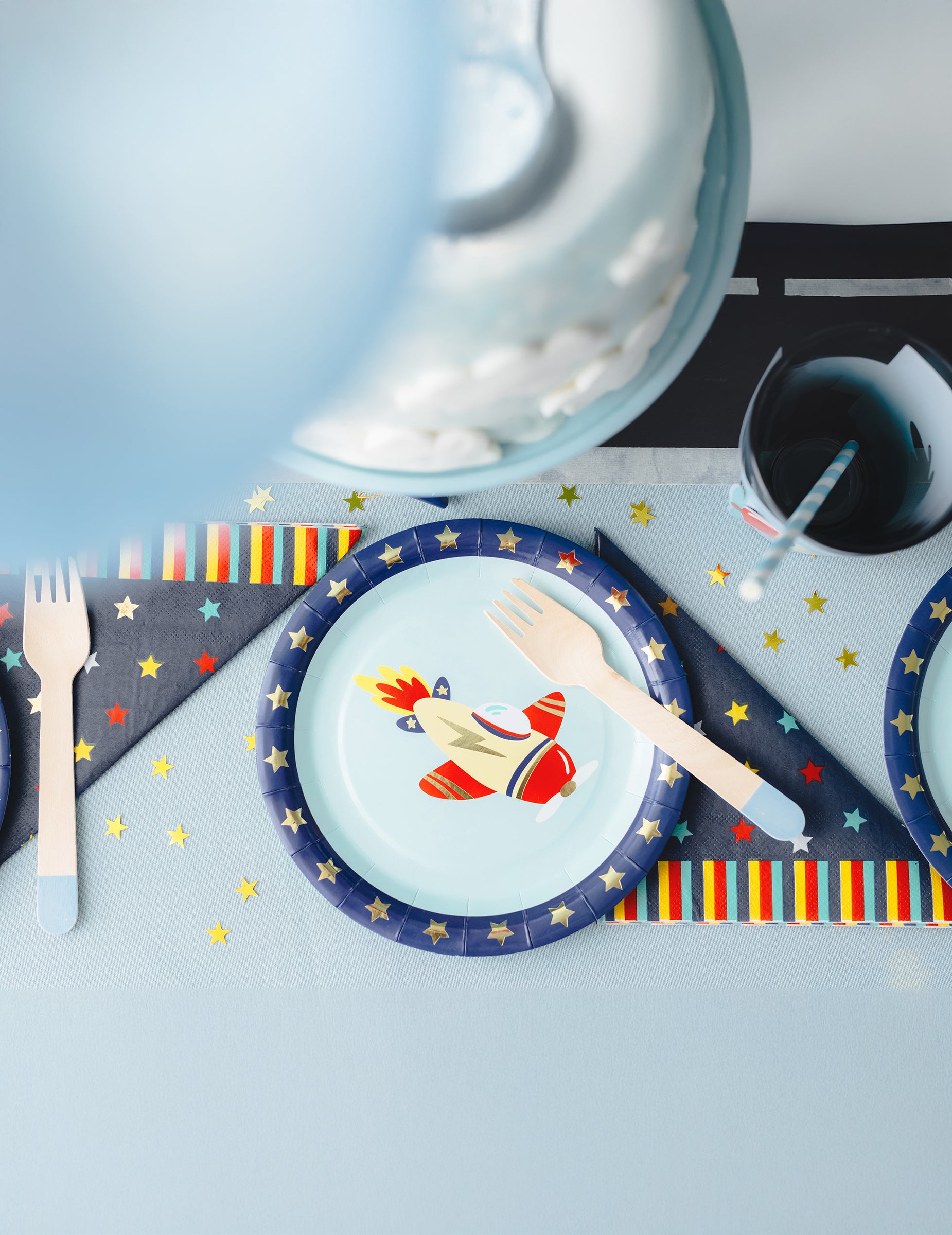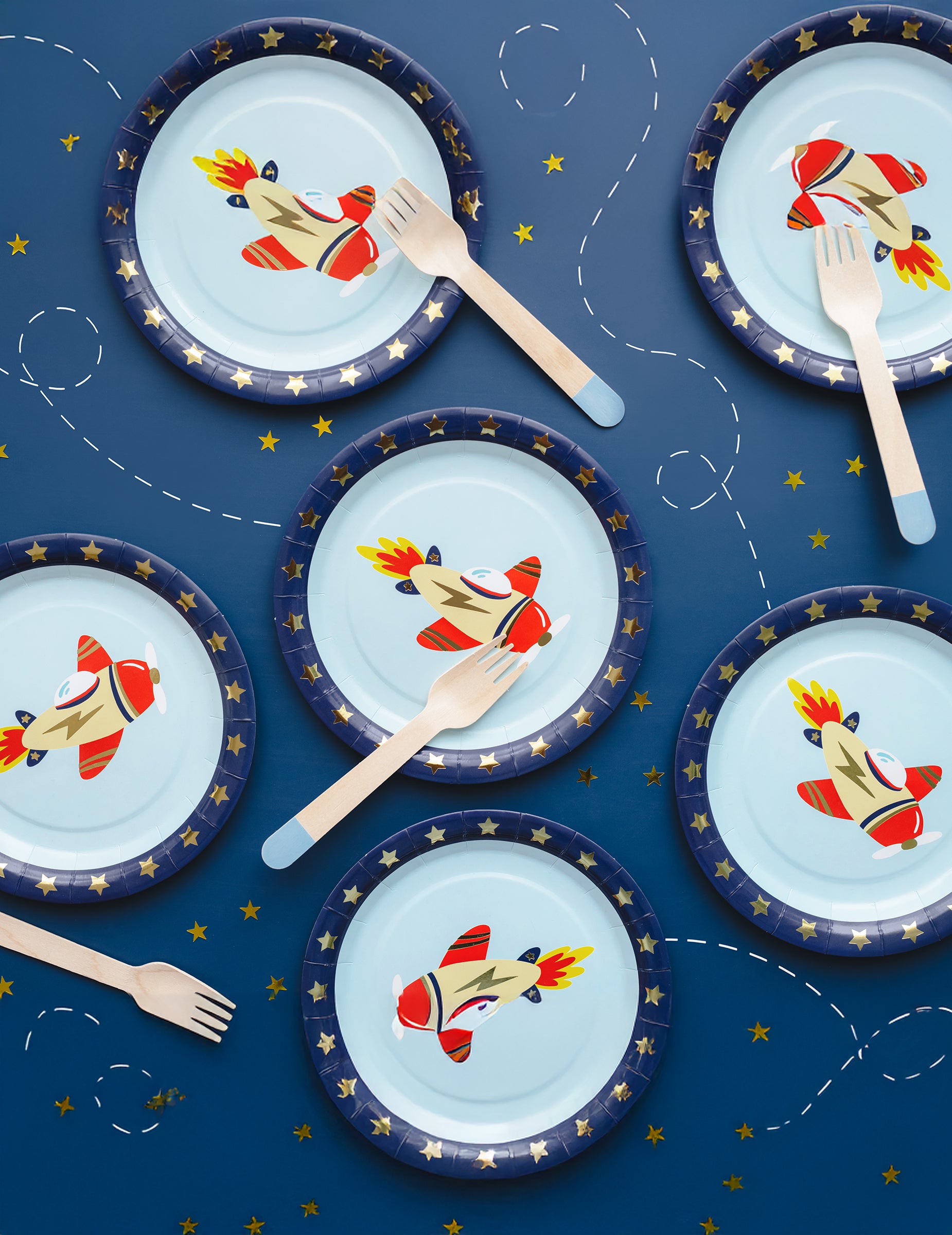 6 majhnih letalskih krožnikov 18 cm modri karton