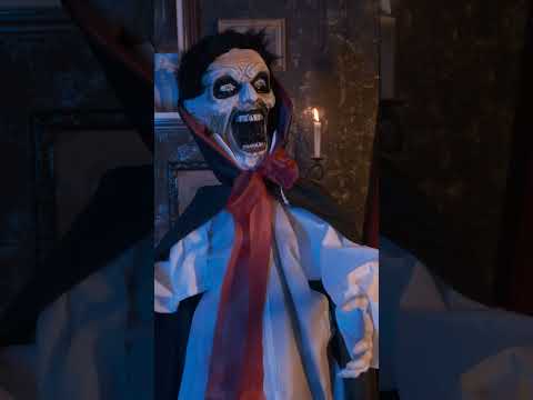 Ta animirani prekleti vampir, 175 cm višina in 105 cm Ta figura, široka nekaj metrov, je videti, kot da bi prišla naravnost iz nočne more. Oblečena v bel top z rdečo pentljo, temne hlače in črn plašč z rdečim ovratnikom, pooseblja grozečo prisotnost. Takoj ko zazna zvok, njen trup oživi, oči se ji zasvetijo rdeče in sproži se zlovešč krik, ki sobo pahne v vzdušje groze. Animacijo upravljate z diskretnim stikalom na hrbtni strani. Dekoracija deluje na 3 AA baterije (priložene). Postavite jo blizu vrat, stene ali kot del odra, da povečate realizem vaše noči čarovnic.