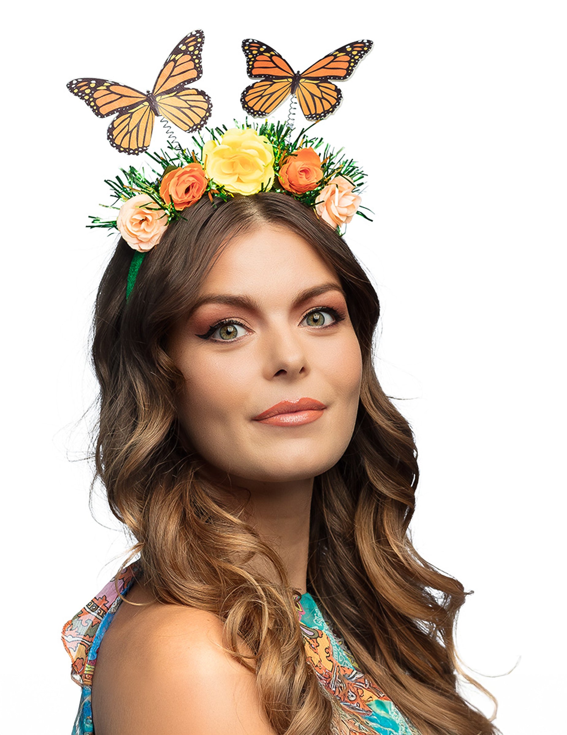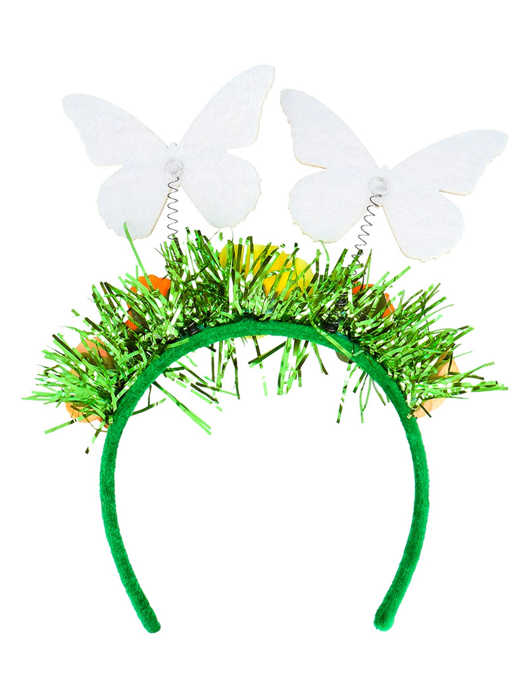 Ta naglavna trak s cvetovi in metulji za odrasle prinaša svež in poetičen pridih tvojemu kostumu. Okrašen z barvitimi cvetovi in dvema lebdečima metuljema, spominja na cvetoč vrt.