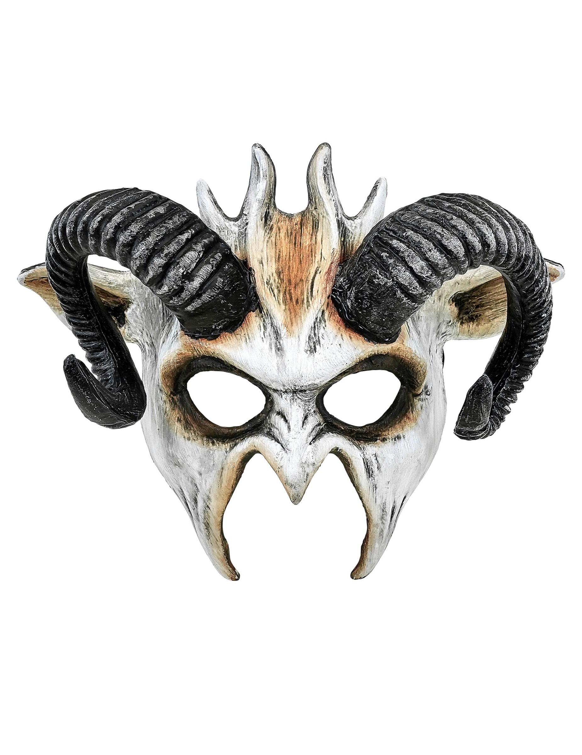 Ce masque de démon blanc à cornes pour adulte est un demi-masque rigide aux détails impressionnants. Il affiche un visage pâle, avec de grandes cornes noires incurvées et des ombres sombres autour des yeux pour un effet terrifiant garanti. Léger et facile à enfiler, il couvre le haut du visage tout en laissant la bouche libre pour parler ou crier sans contrainte. Parfait pour Halloween, une soirée horreur ou un déguisement démoniaque, ce masque apportera une touche infernale et saisissante à votre look.