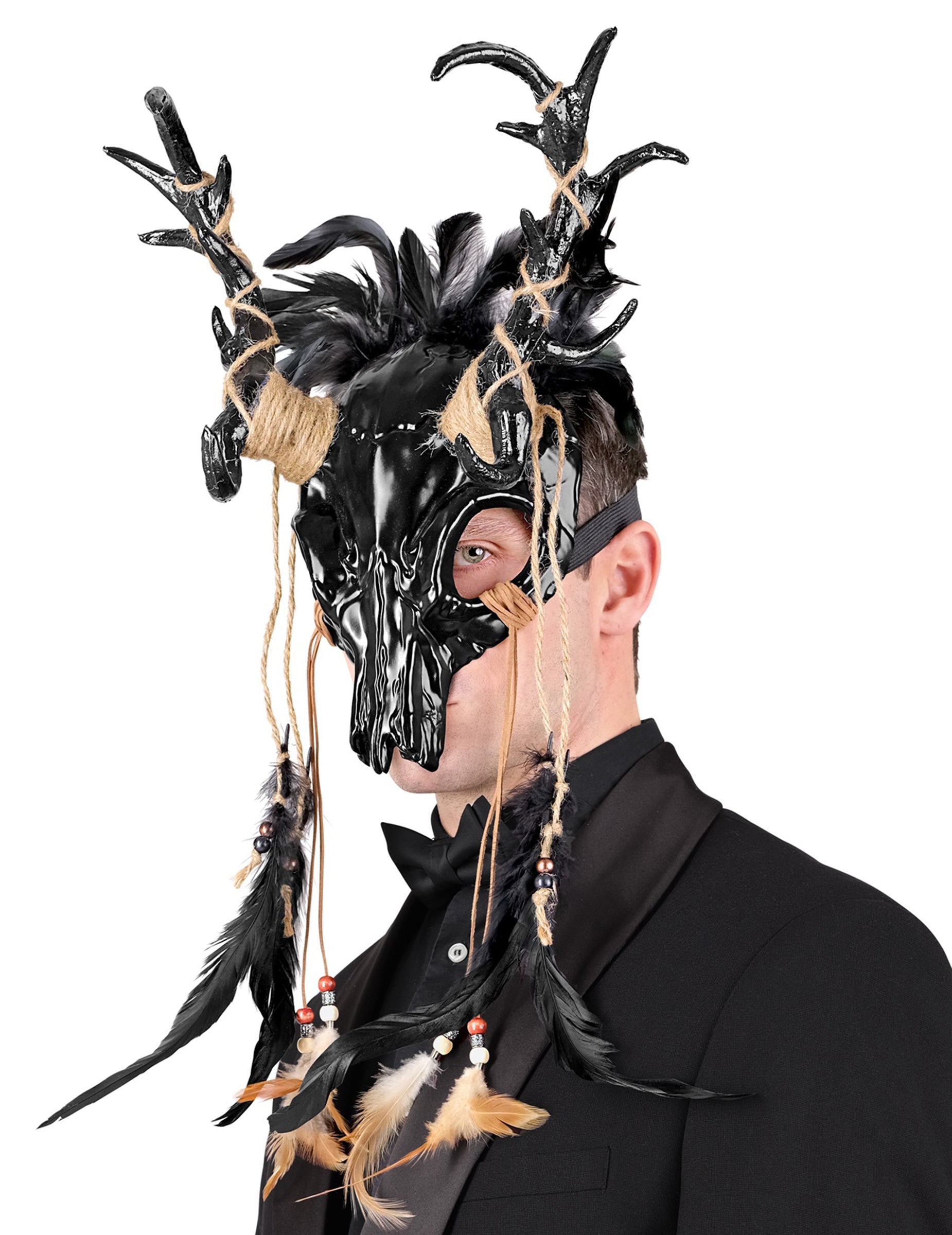 Masque chaman vaudou noir à plumes adulte