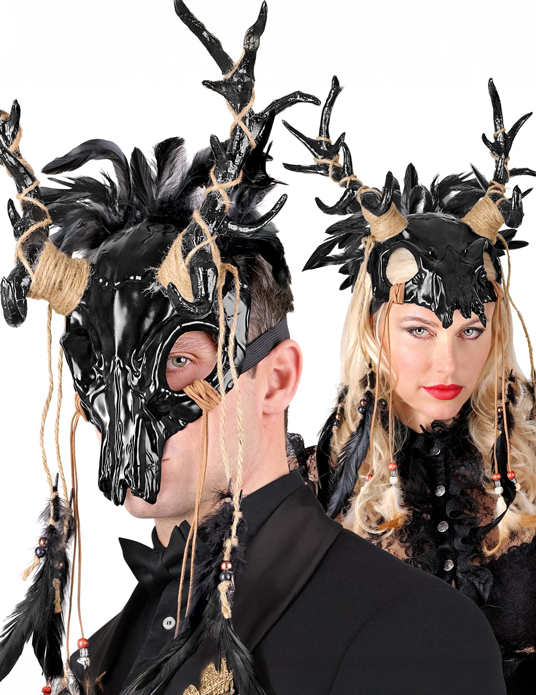 Ce masque chaman vaudou noir à plumes pour adulte est un demi-masque rigide orné de cornes noires, de plumes sombres et de détails en corde naturelle. Son design évoque les rituels anciens et les esprits de la forêt. Léger et enveloppant, il se fixe facilement pour transformer instantanément votre regard envoûtant en celui d’un être mystique. Parfait pour Halloween, une soirée sorcellerie ou un costume tribal, ce masque imposant ajoutera une dimension énigmatique et puissante à votre tenue.