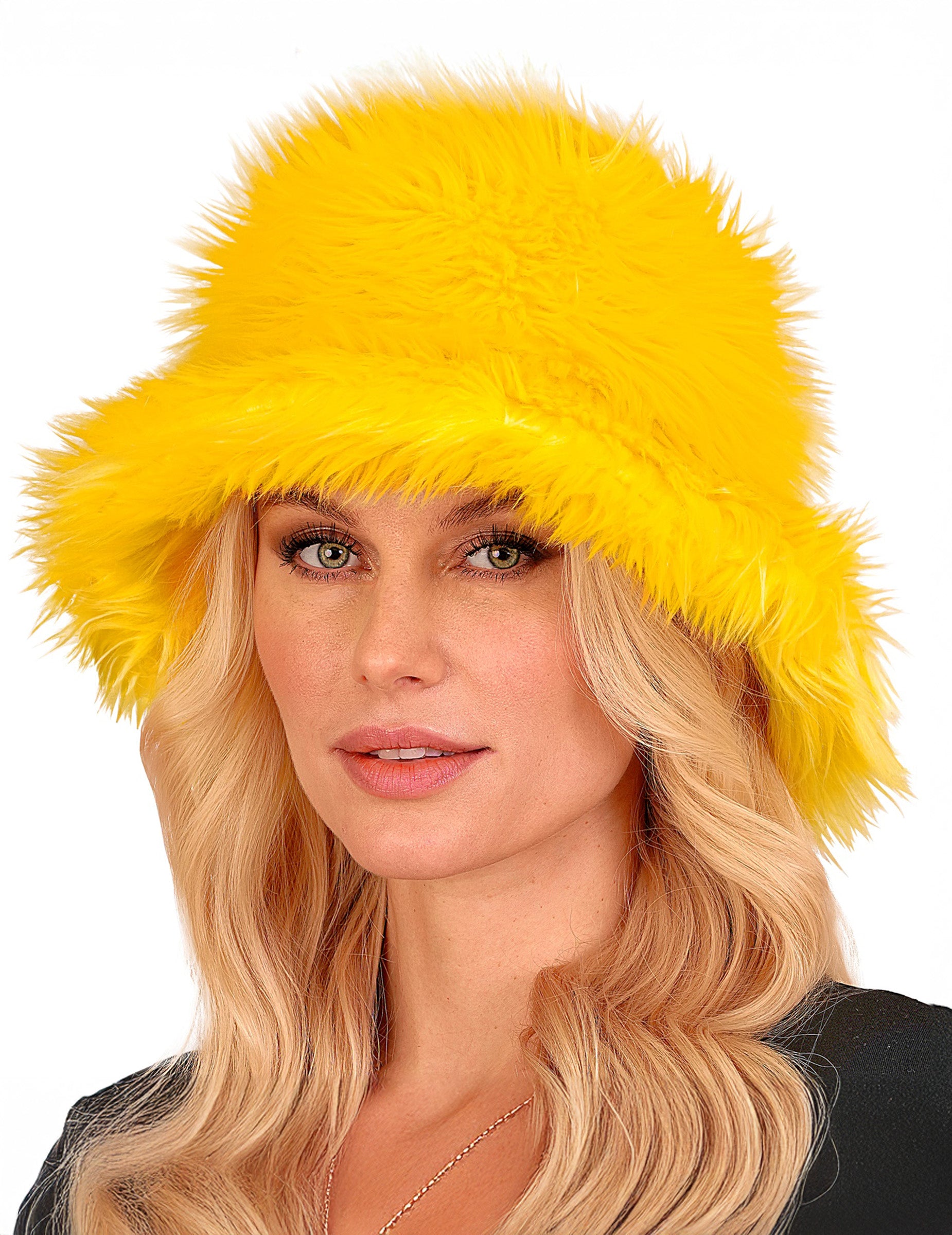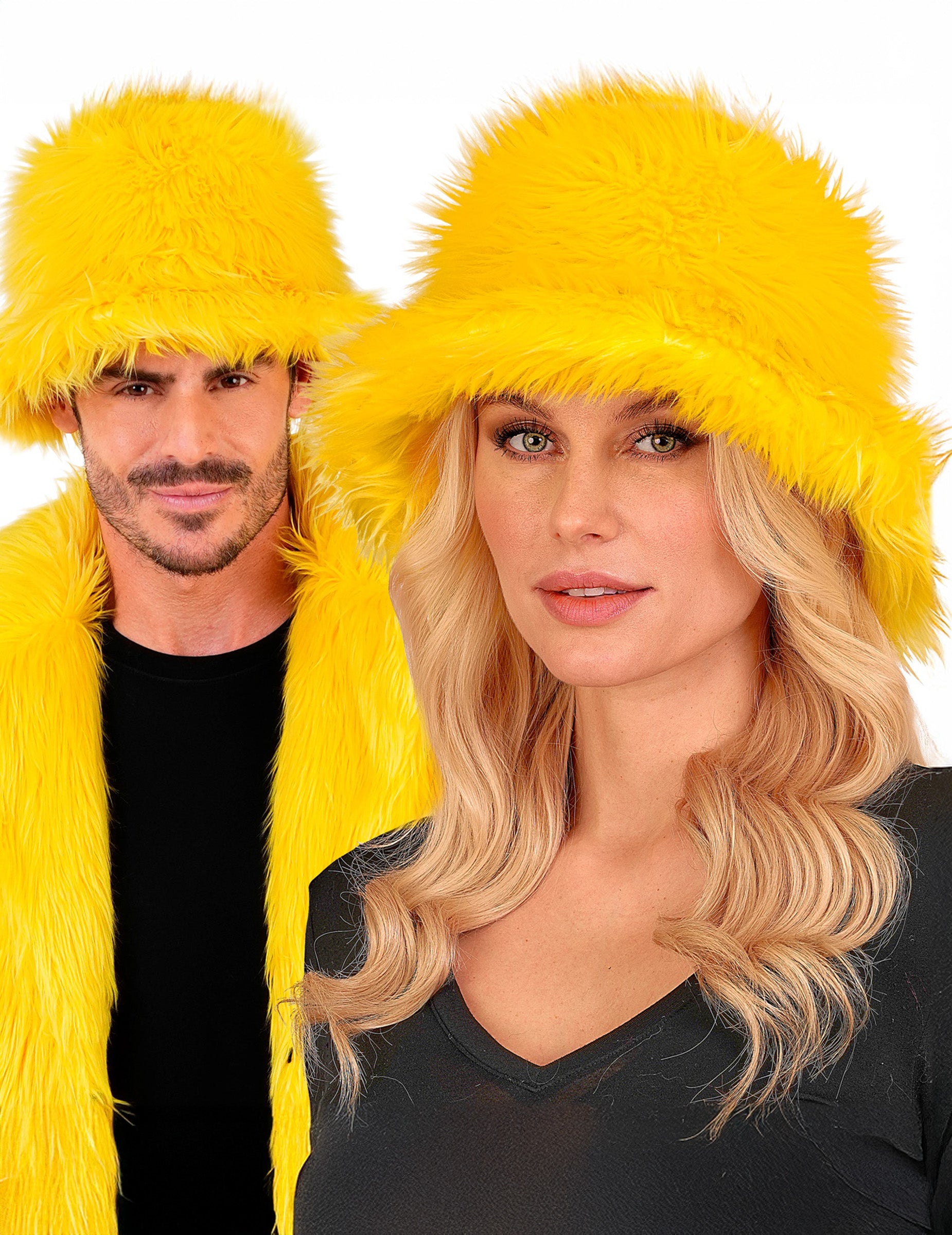 Ta rumena kapa iz umetnega krzna bo tvojemu videzu dodala svetel in iskriv pridih. Njena živa barva in mehka tekstura jo naredita zabaven in opazen dodatek. Idealna je za pust, kostumsko zabavo ali barvit dogodek, saj bo ta klobuk tvoji opravi dodal sončni žarek.