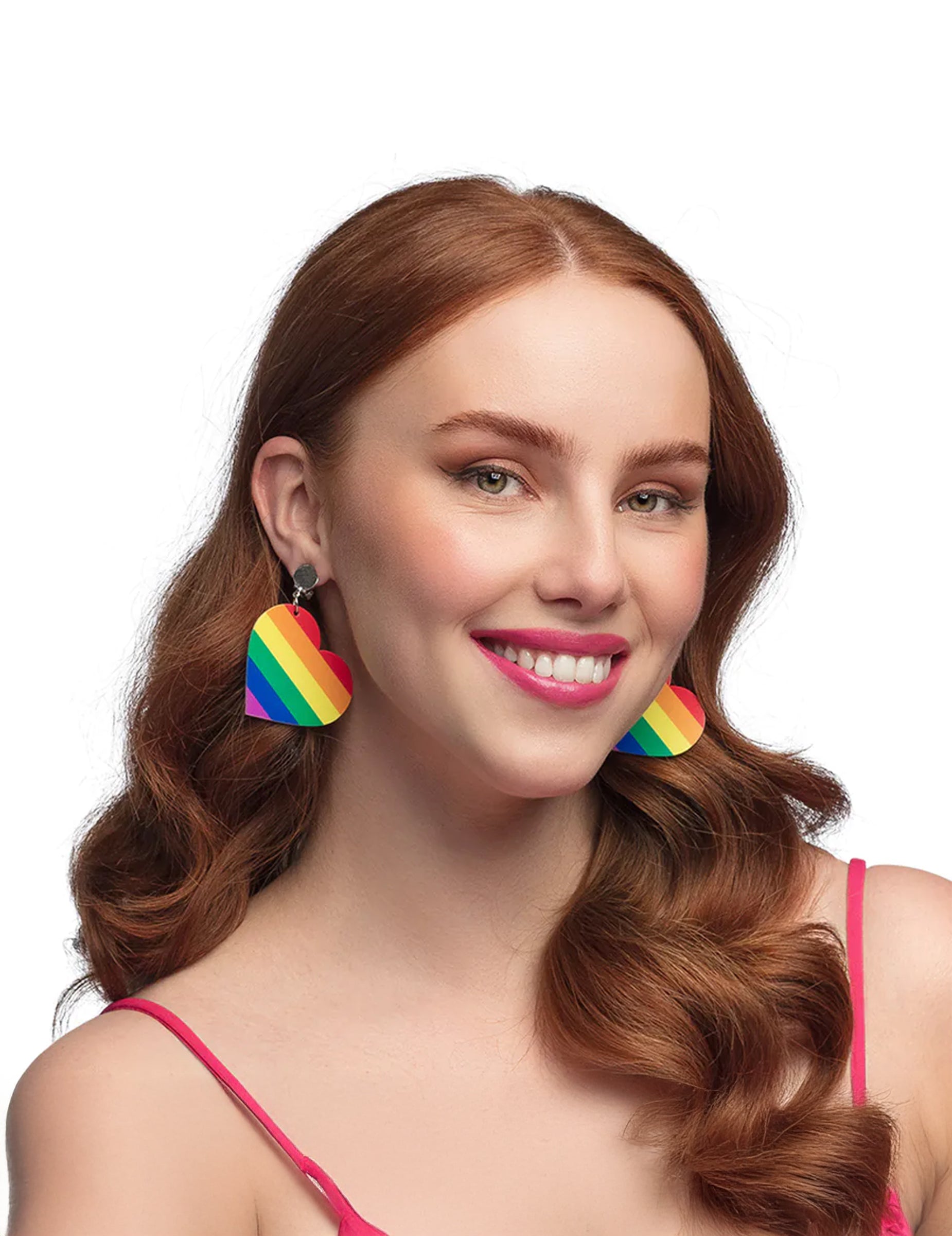 Ti mavrični srčni uhani so popoln dodatek, ki v svojo obleko dodajo veselo in samozavestno opombo. Lahka za nošenje, ponosno prikazujejo barve mavrice v jasno vidni obliki srca, idealno za pritegnitev pozornosti vseh. Nosite se med pohodom ponosa, festival ali preprosto uveljaviti svoj vsakdanji slog, ti uhani so pravi simbol izražanja in svobode.