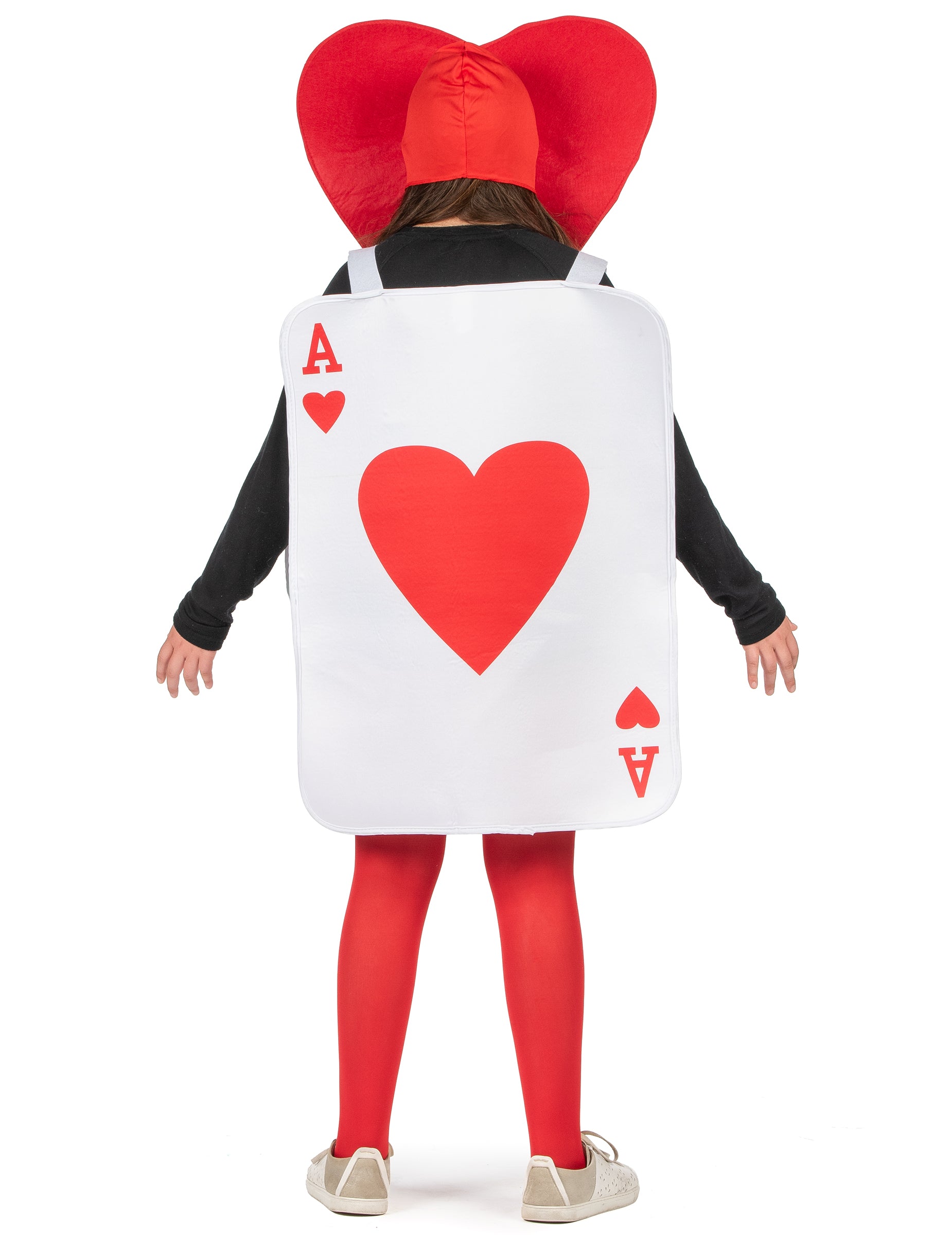 Ce déguisement d’as de cœur pour enfant comprend un costume carte et un chapeau assorti en forme de cœur. La tunique blanche, à la forme rectangulaire rembourrée, est ornée des grands symboles rouges emblématiques de l’as de cœur, pour un effet visuel fort et facilement reconnaissable. Sa coupe ample permet de bouger, courir et jouer en toute liberté. Le chapeau en forme de cœur, doux et léger, vient apporter une touche finale pleine de fantaisie. Une tenue idéale pour le Carnaval, une fête costumée ou un univers inspiré des contes enchantés comme Alice au Pays des Merveilles.