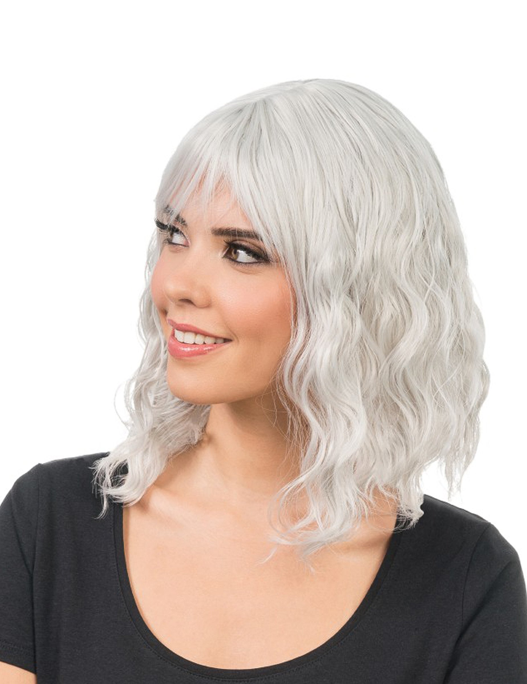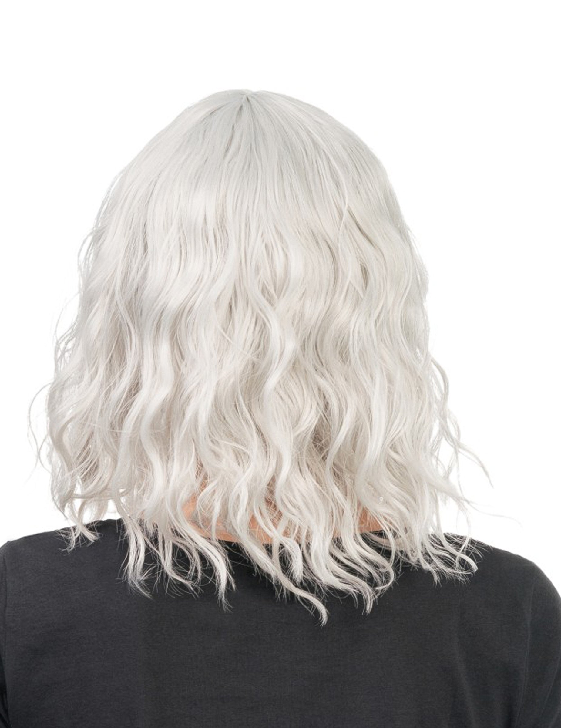 Cette perruque ondulée gris clair pour adulte offre une coupe mi-longue d’environ 35 cm, avec de douces ondulations et une frange légère. Parfaite pour compléter un déguisement de sorcière, de fantôme chic ou de créature mystique à l’occasion d’Halloween. Un accessoire élégant pour un look aussi envoûtant que mystérieux.