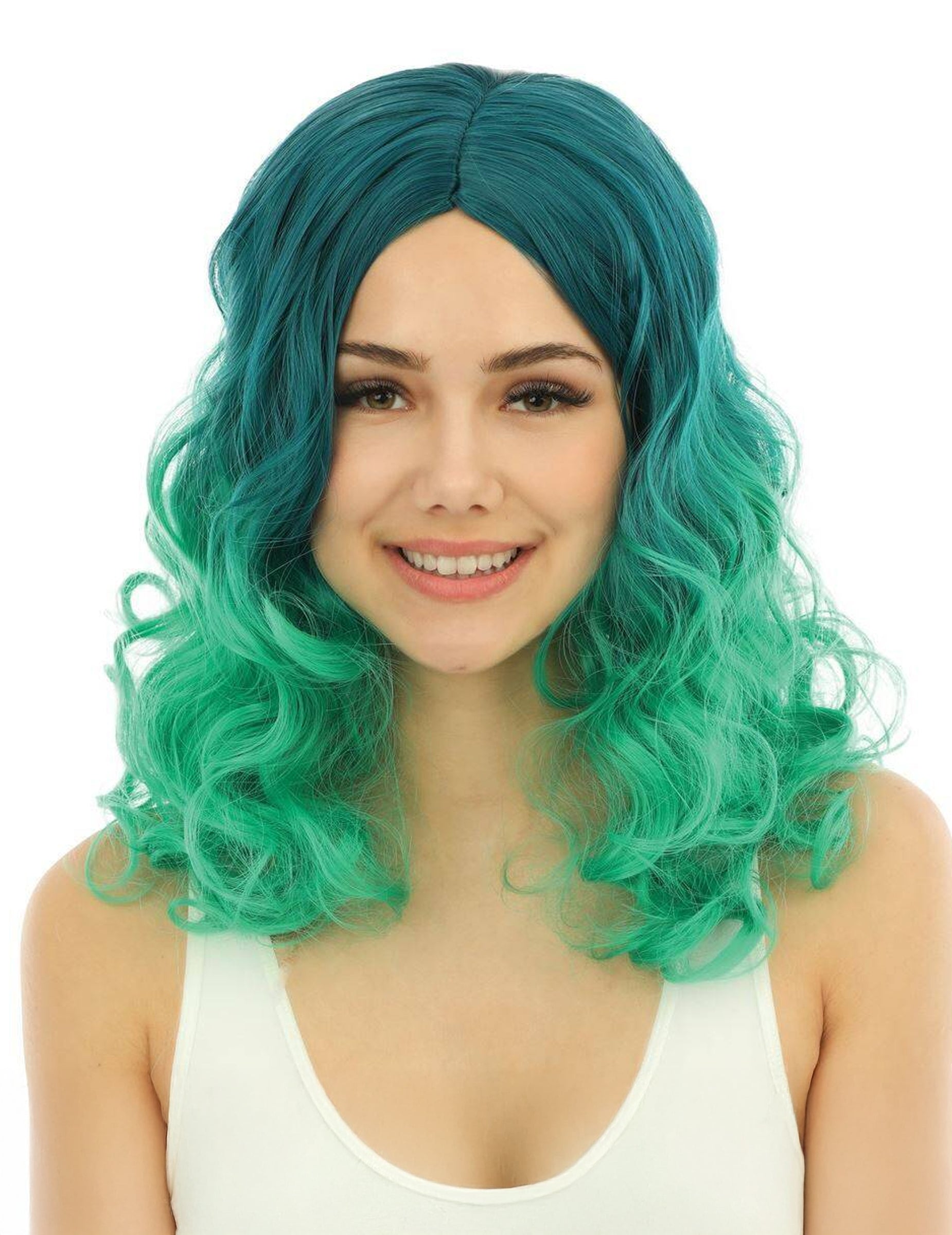 Cette perruque tie and dye verte luxe pour adulte offre une coupe mi-longue bouclée, avec un superbe dégradé allant du vert foncé au vert clair. Elle est coiffable et lissable, pour adapter votre look selon vos envies. Idéale pour un déguisement de sirène, de créature fantastique ou simplement pour une touche originale lors d’une fête costumée. Un accessoire coloré et tendance pour briller en soirée !